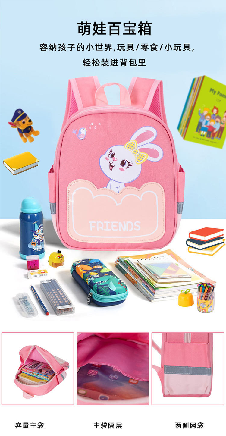 2023 새로운 만화 귀여운 작은 토끼 유치원 책가방 여행 어린이 배낭 소년과 소녀 어린이 배낭