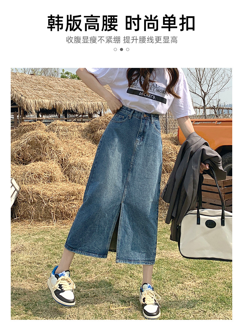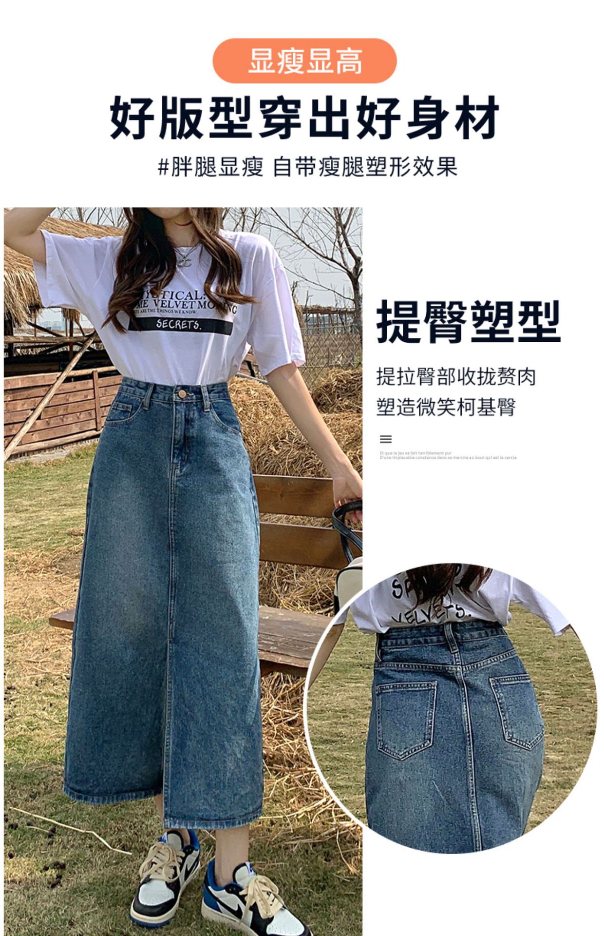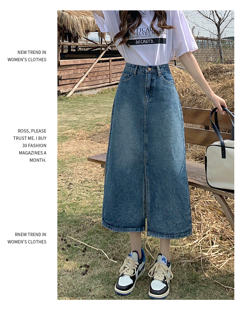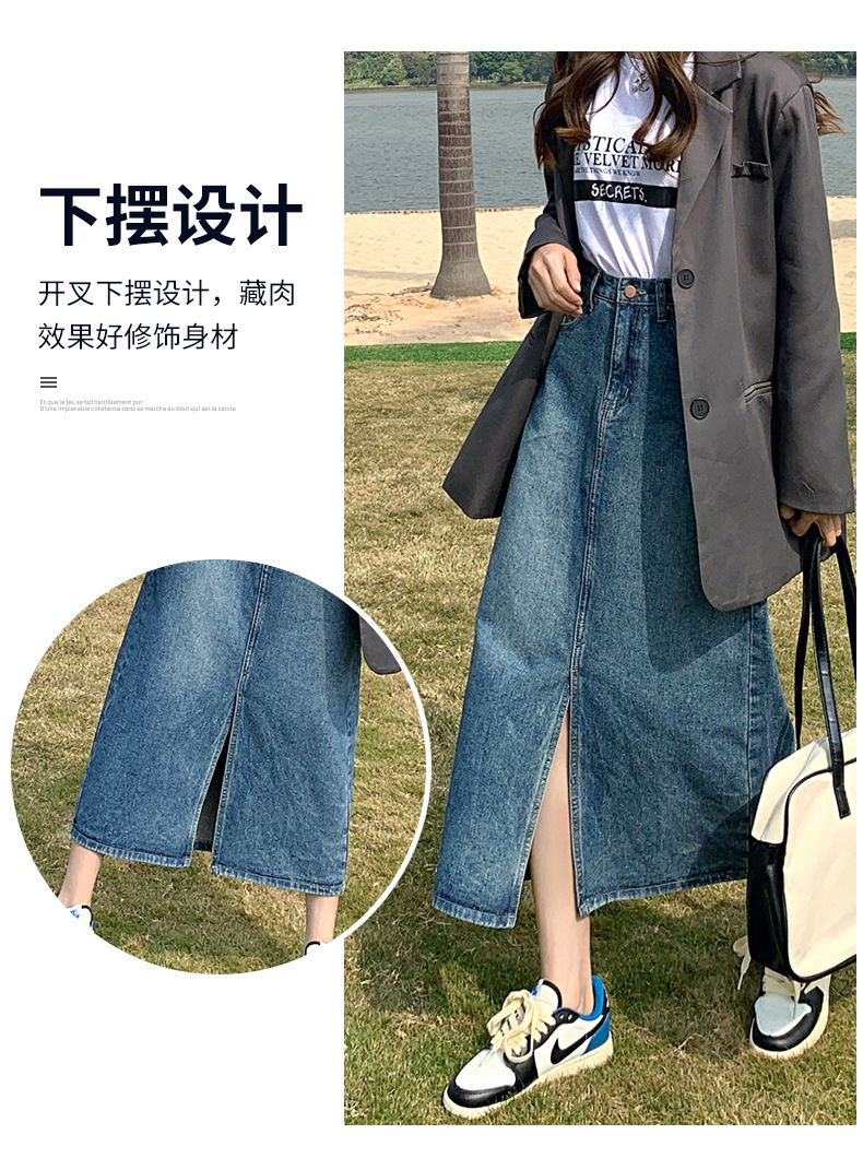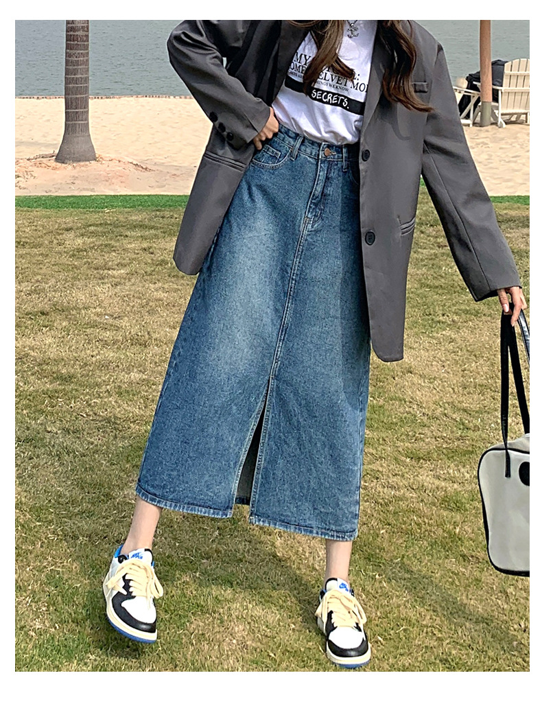 빈티지 블루 데님 롱 스커트 여자의 오버 스커트 하이 웨이스트 A 라인 롱 스커트 2023 봄 새로운 스플릿 데님 스커트스토어 가기