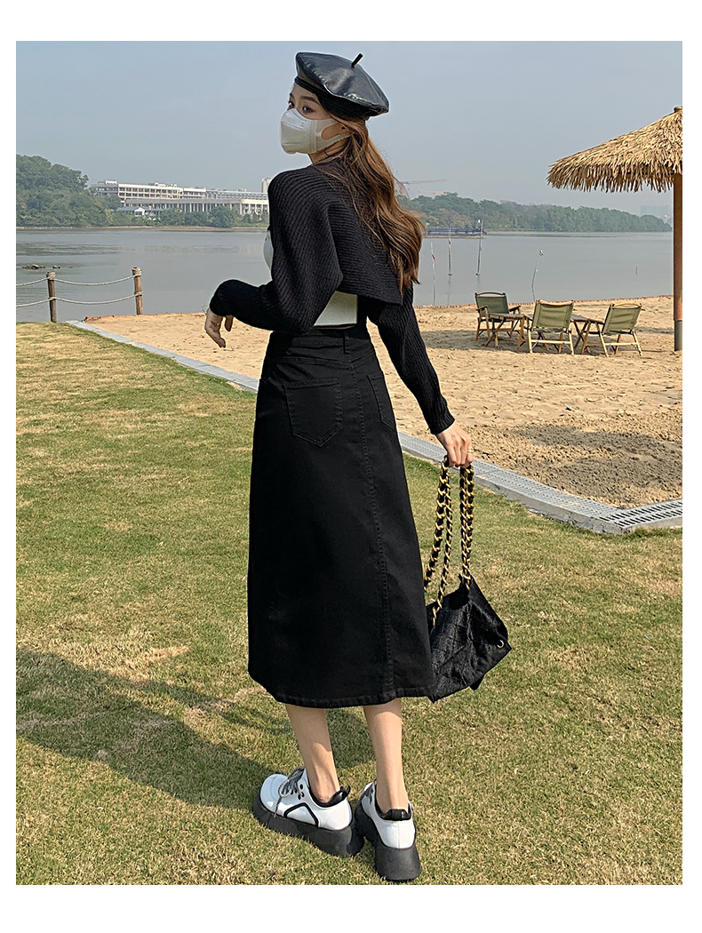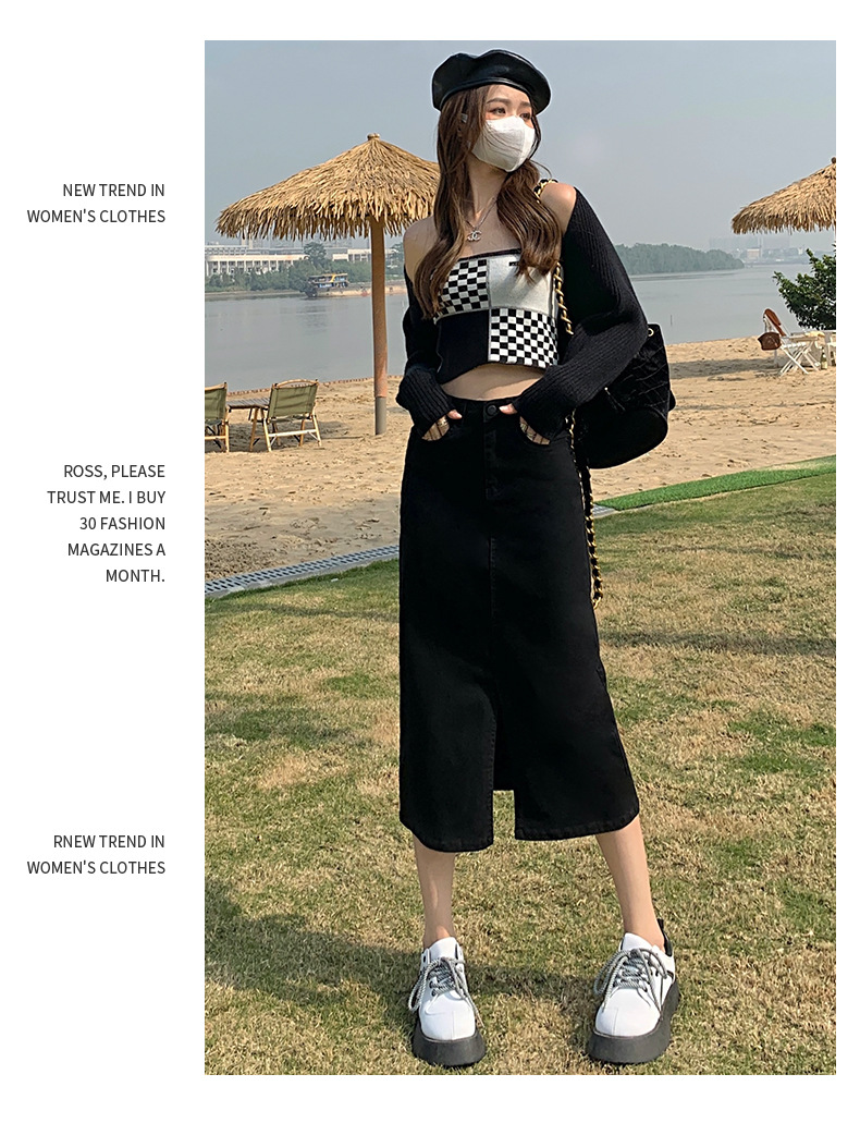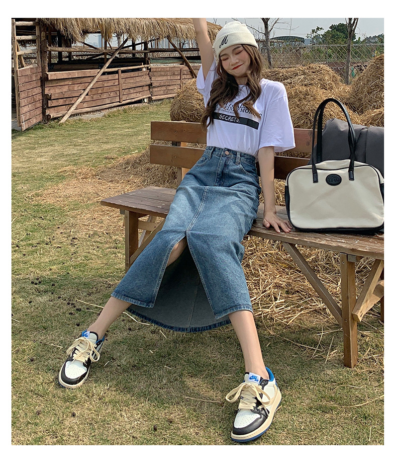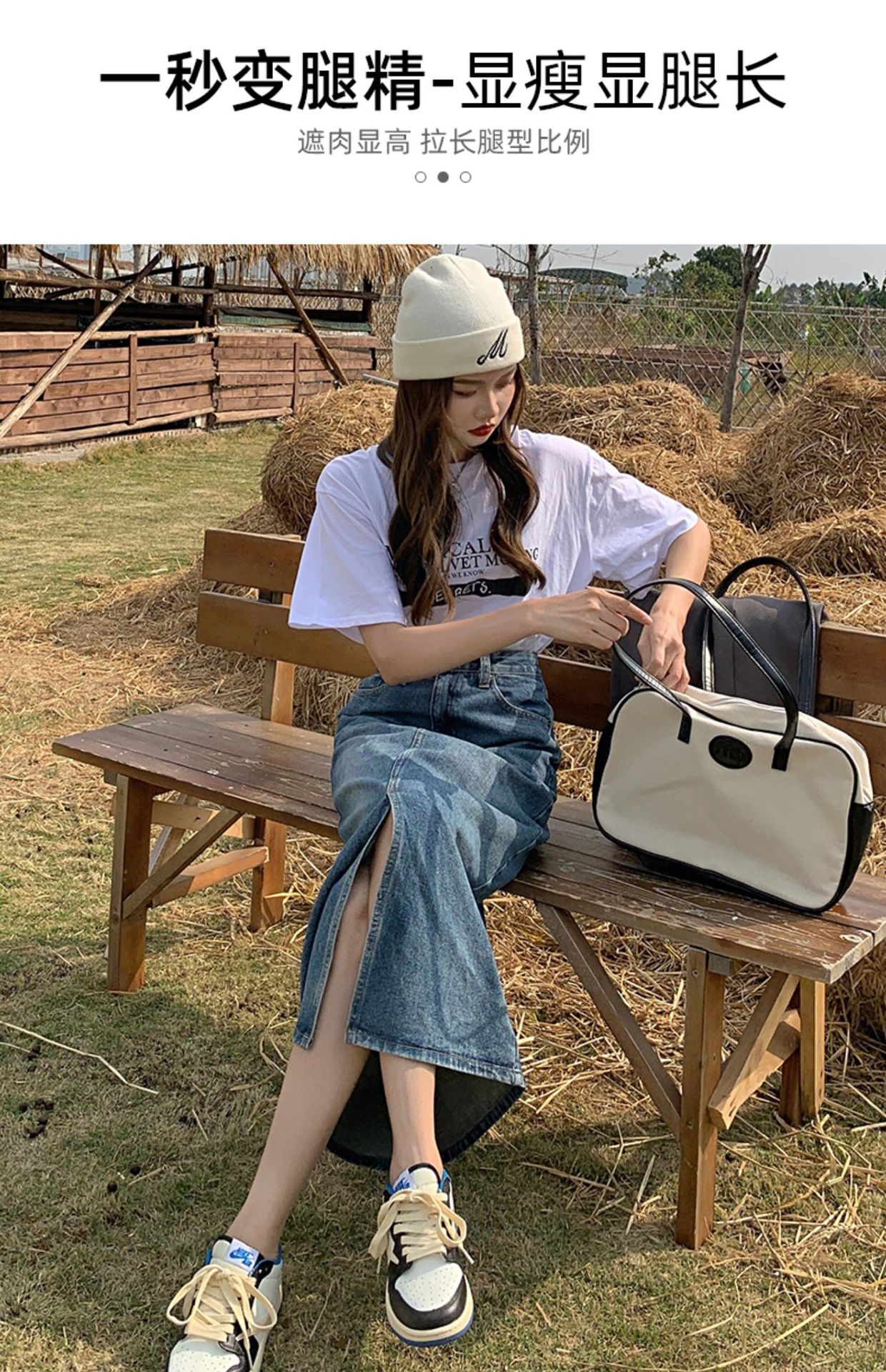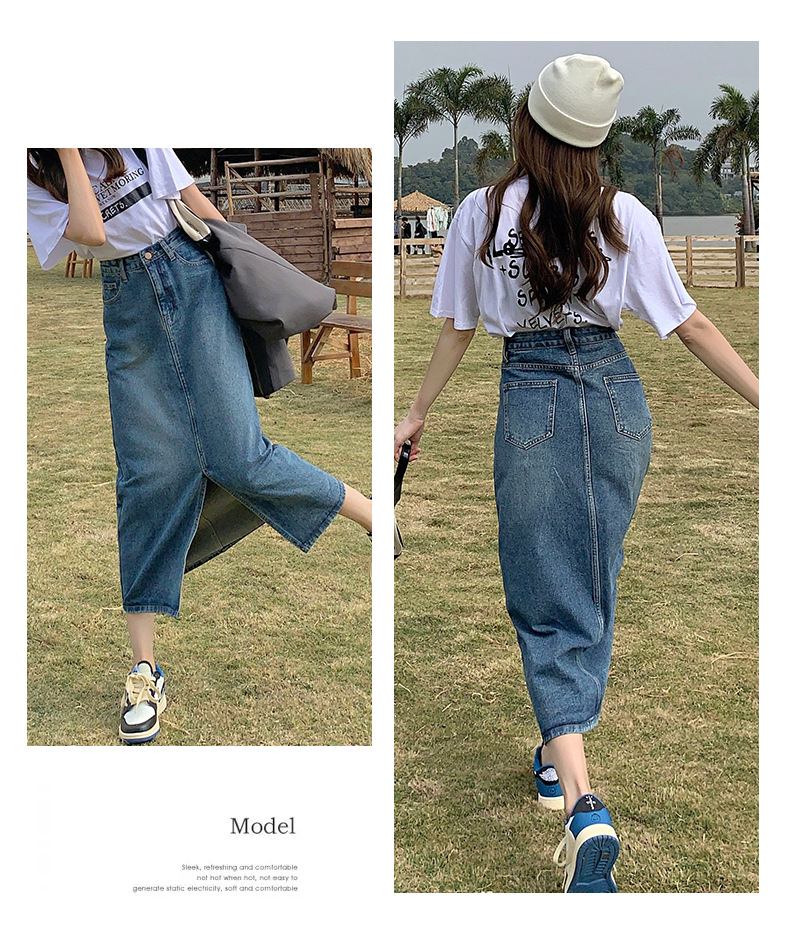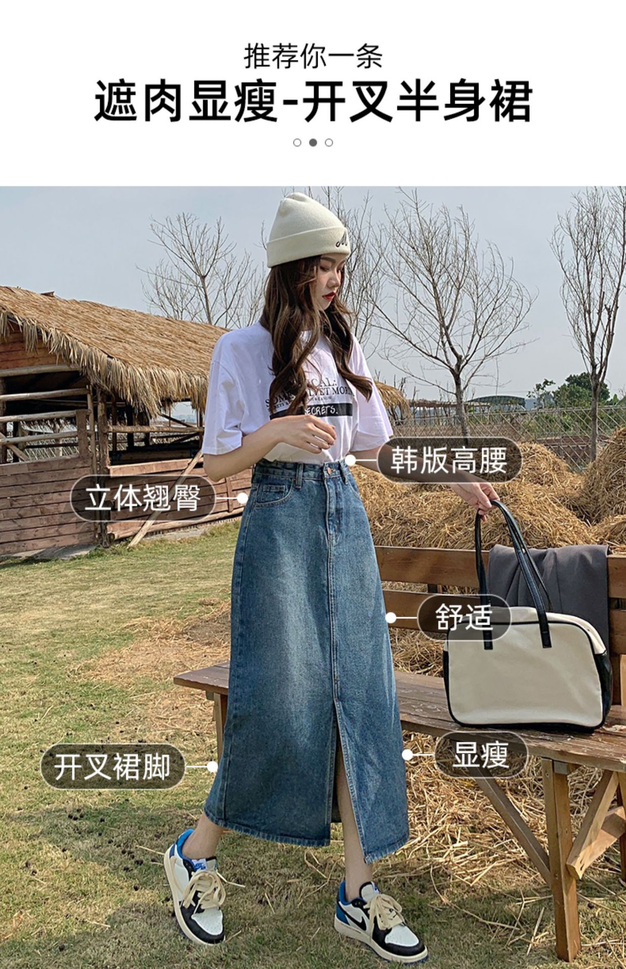 빈티지 블루 데님 롱 스커트 여자의 오버 스커트 하이 웨이스트 A 라인 롱 스커트 2023 봄 새로운 스플릿 데님 스커트스토어 가기