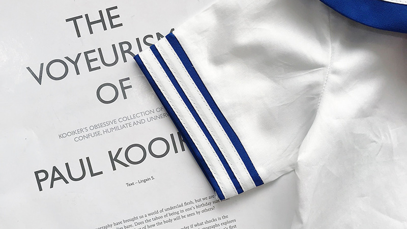 • 파란색과 흰색 양말을 보내는 여자 반팔 코튼 세트 (재킷 + 스커트)