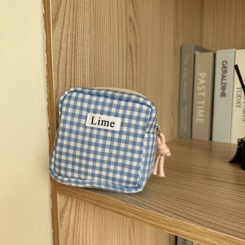 • 라임 블루 격자 무늬 다기능 작은 사각형 가방
