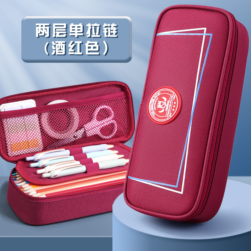 • [버건디 가로 프레임/더블 레이어] BC215 필통