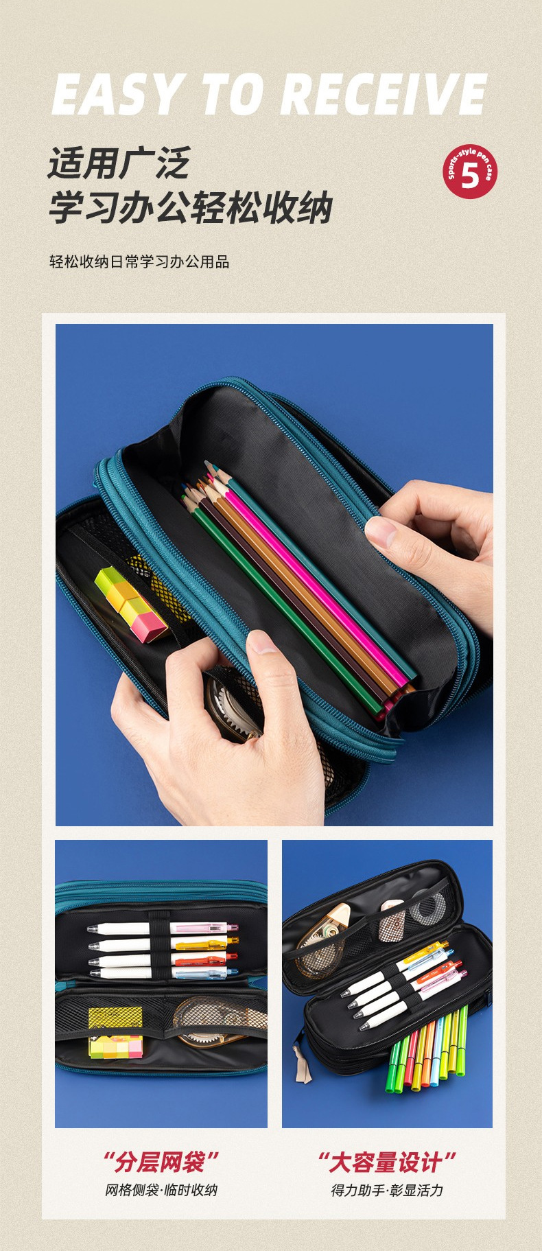 델리 BC214 필통 남자 학생 문구 케이스 여자 쿨 타이드 BC215 필통 대용량 문구 가방