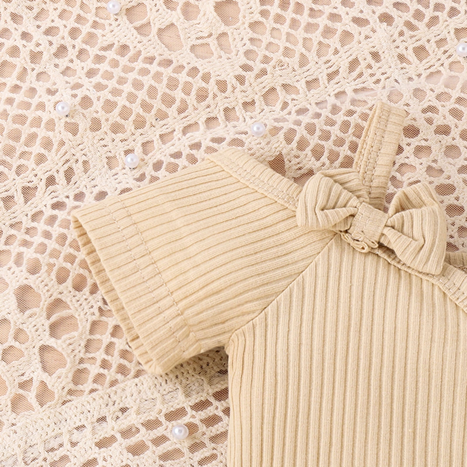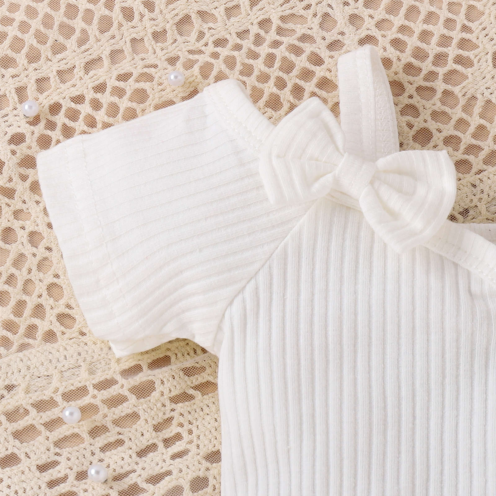 Baopin 어린이 착용 유럽과 미국 여름 소녀 귀여운 활 V-목 짧은 소매 가방 뚱뚱한 옷 꽃 인쇄 플레어 바지 세트스토어 가기