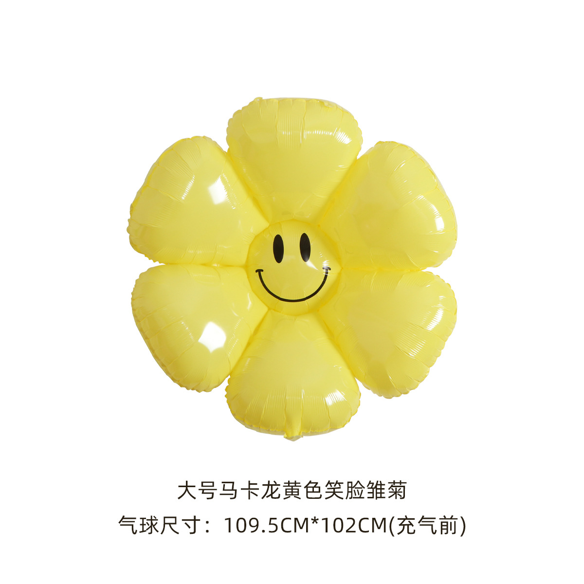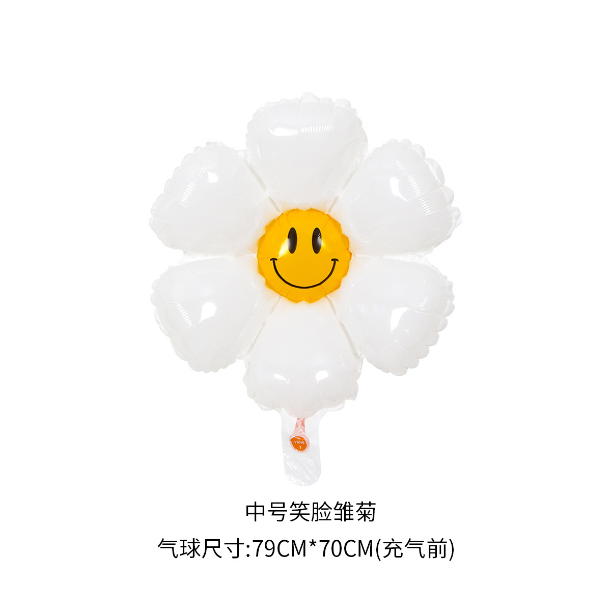 Xiaohongshu의 같은 스타일 해바라기 풍선 웃는 얼굴 알루미늄 필름 데이지 풍선 사진 생일 장식 스톨 데이지 풍선