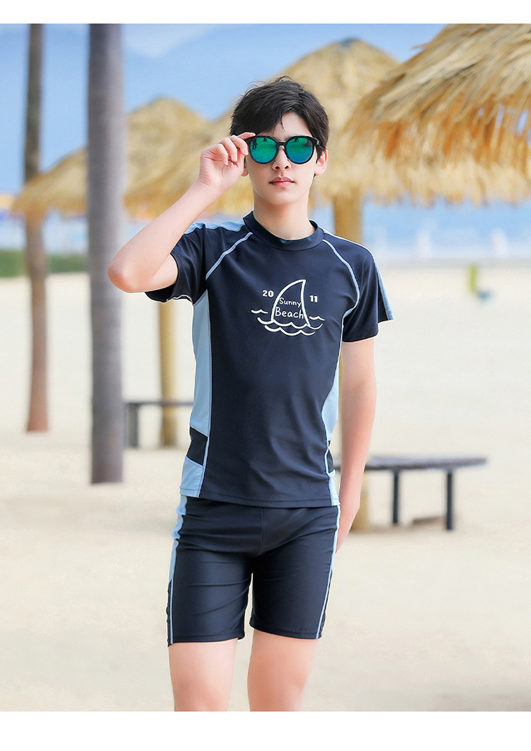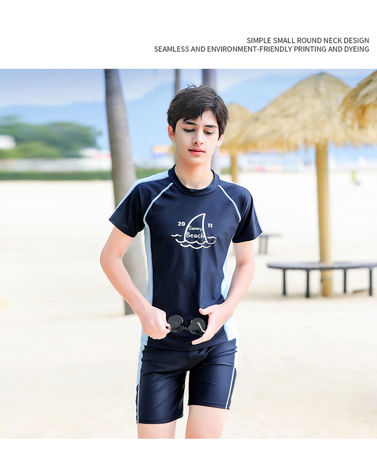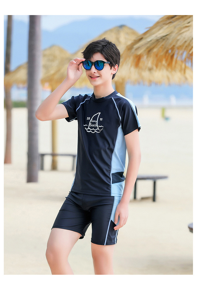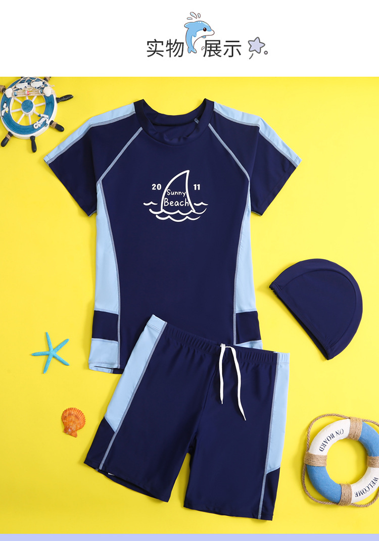 플러스 사이즈 소년 수영복 공장 직접 2023 새로운 스포츠 스타일 분할 복서 5 수영 트렁크 세트 수영복스토어 가기
