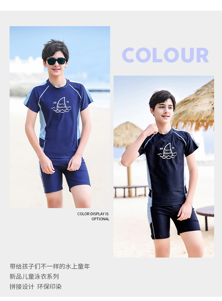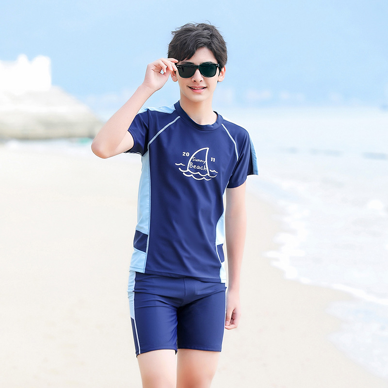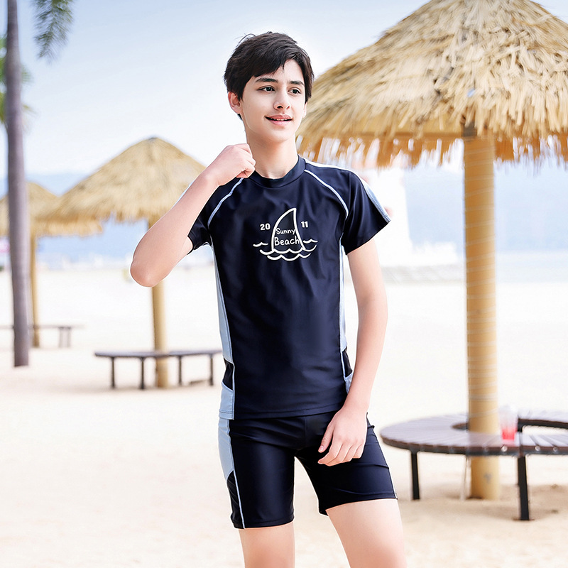 플러스 사이즈 소년 수영복 공장 직접 2023 새로운 스포츠 스타일 분할 복서 5 수영 트렁크 세트 수영복