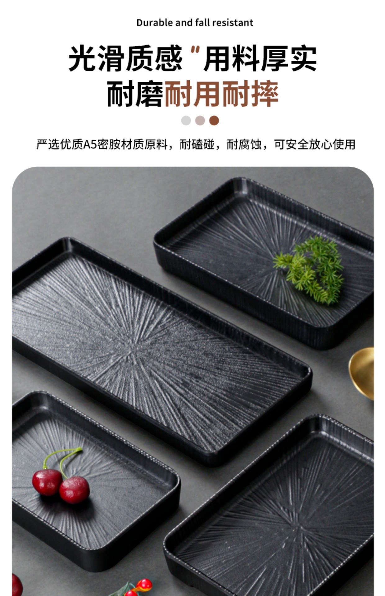 멜라민 식기 블랙 플레이트 플라스틱 플레이트 디너 플레이트 반찬 냄비 재료 바베큐 플레이트 상업 모조 도자기 요리 도매