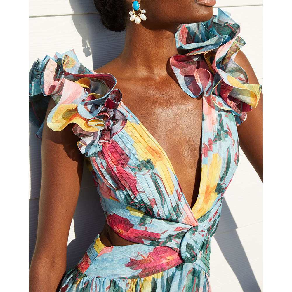 재고 2023 유럽과 미국의 새로운 아마존 AliExpress 원피스 수영복 여성용 단색 배꼽 커버 슬림 등이없는 수영복