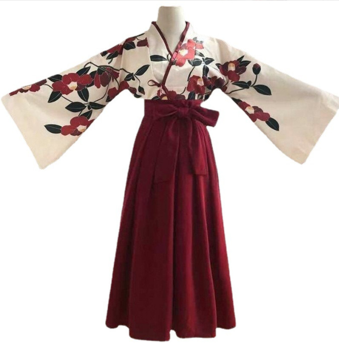 2023 새로운 개선 한푸 유 메이 렌 블랙 동백 동양 복고풍 중국 스타일 세트 소녀 코스프레 수업 옷스토어 가기