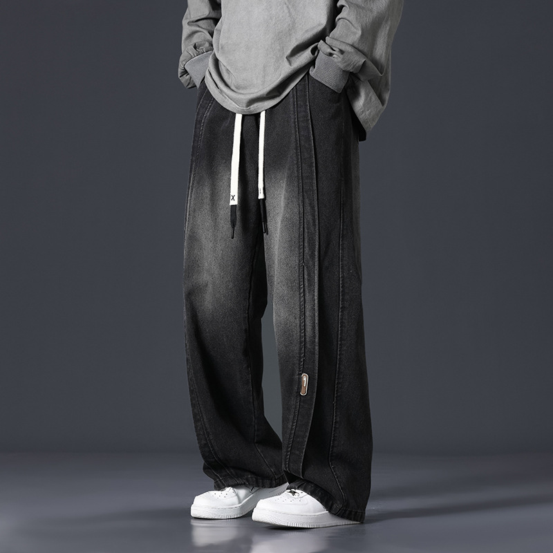 크로스보더 무역 드레이프 빅사이즈 남성 데님 팬츠 인기 트렌디 브랜드 루즈핏 스트레이트 와이드 레그 롱팬츠 남녀공용 알리익스프레스