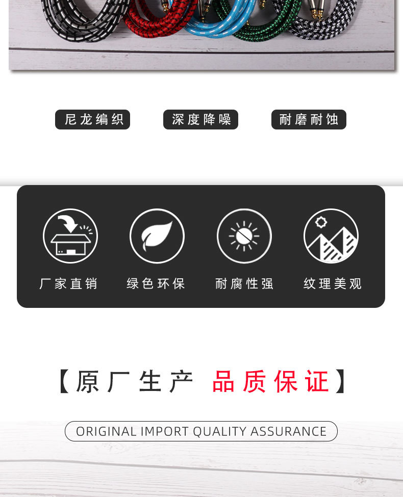기타 소음 감소 나일론 꼰 이펙터 케이블 오디오 케이블 전기 상자 나무 기타 케이블
