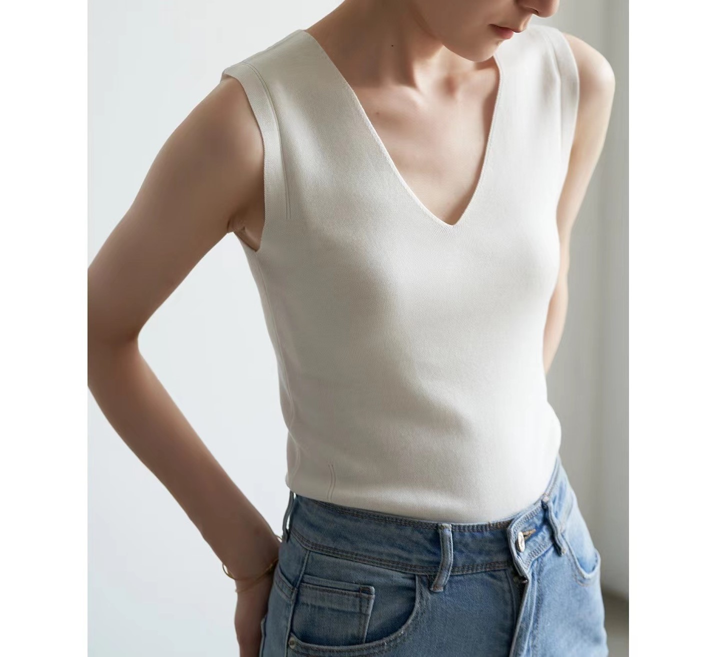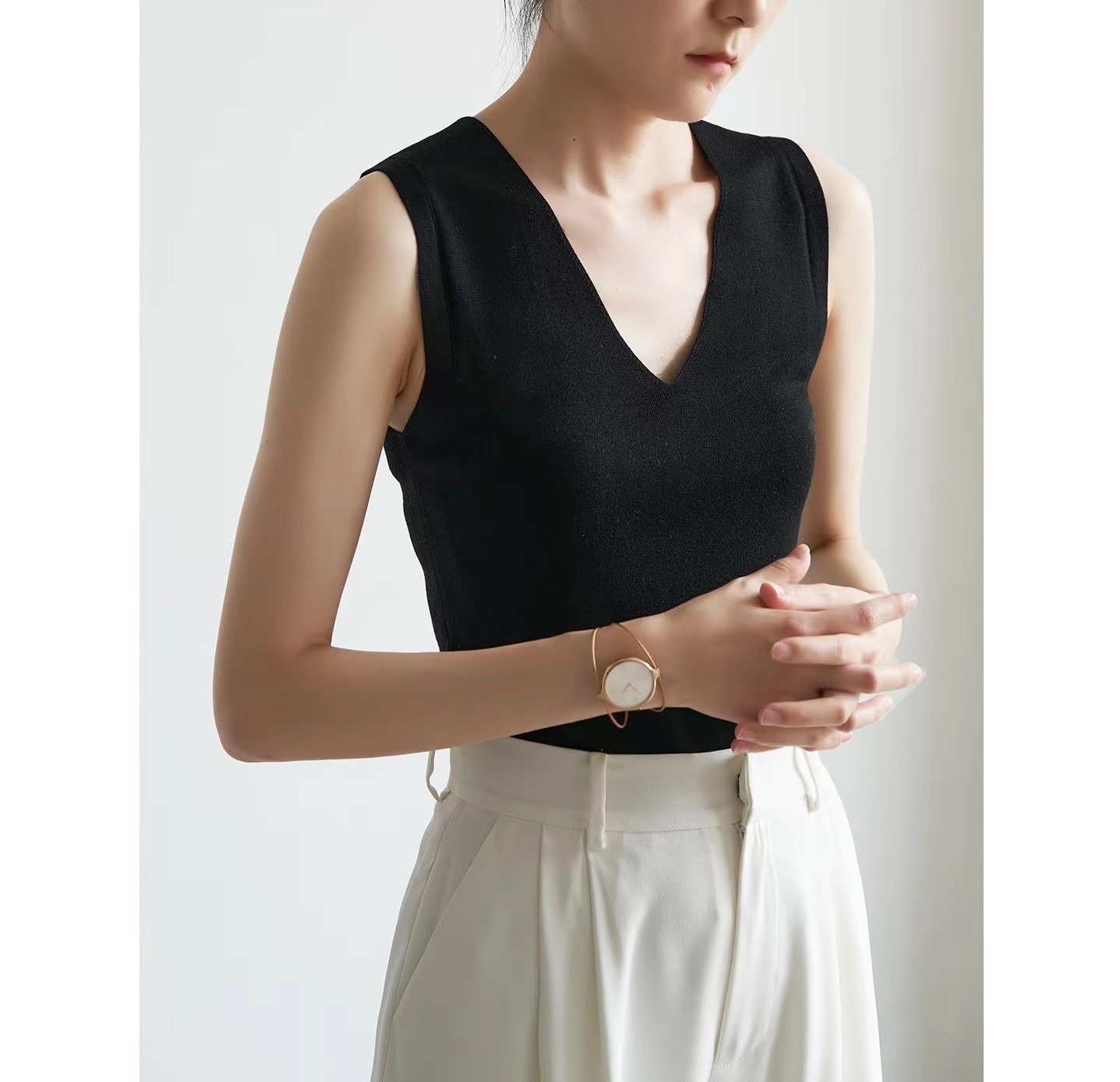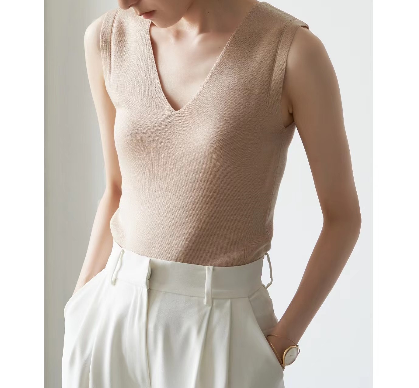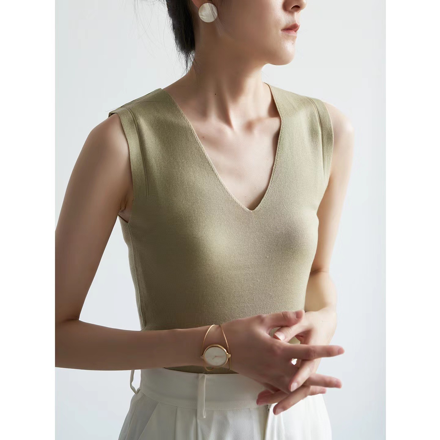 SS STUDIO 텐셀 + 뽕나무 실크 + 면 심플하고 패셔너블한 통근 조커 V넥 이너 조끼 여성 여름 겉옷