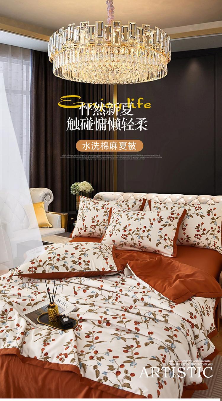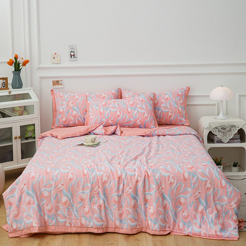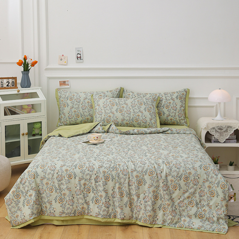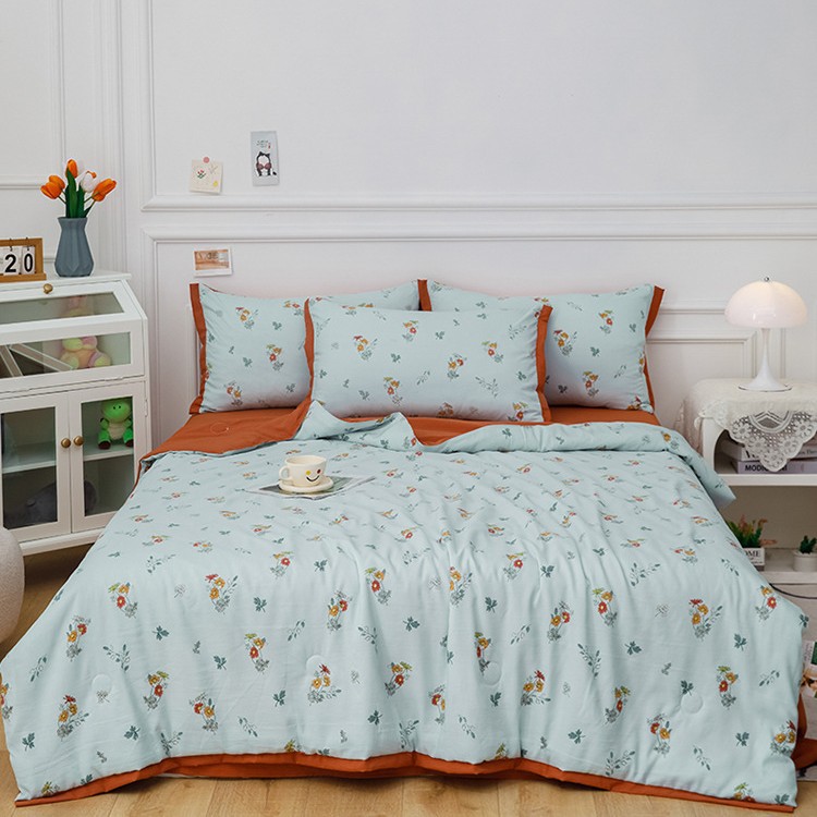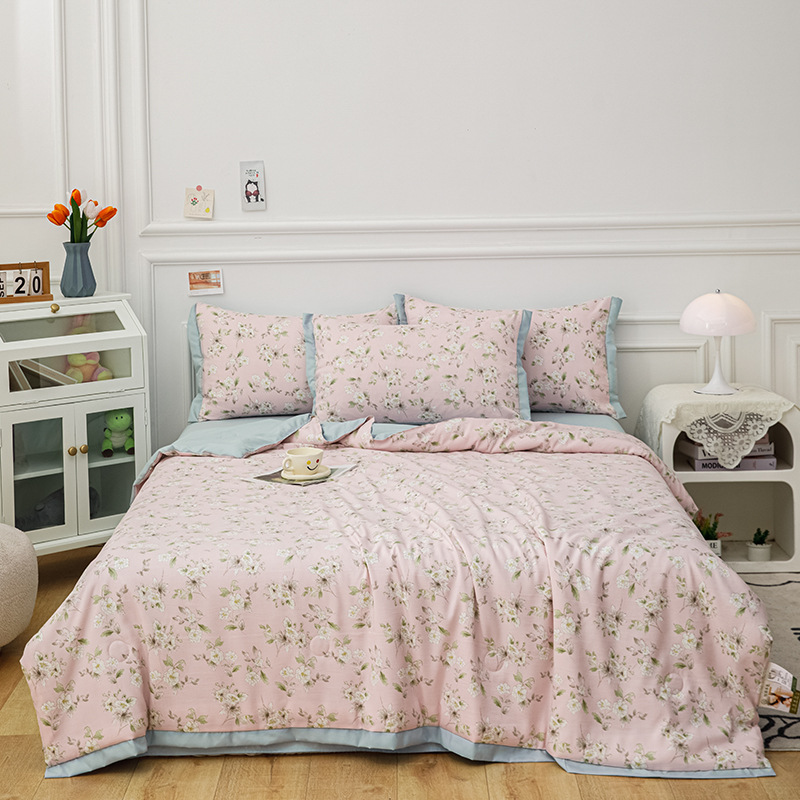 여름 신상품 소 신선한 꽃 여름 이불 통기성 깃털 실크 면 여름 이불 얇은 이불 단체 구매 도매스토어 가기