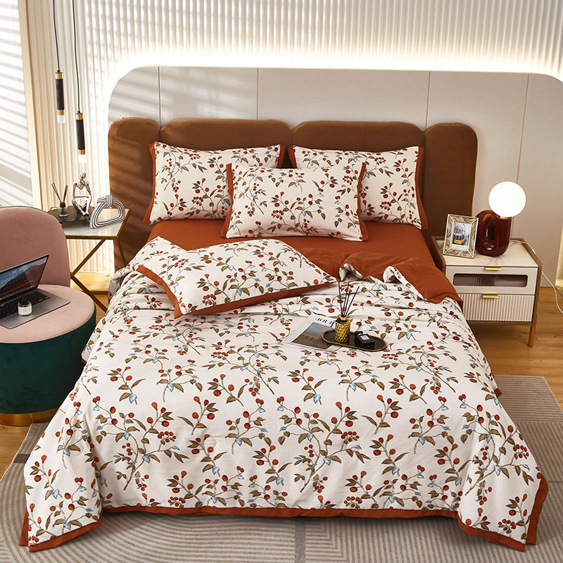 여름 신상품 소 신선한 꽃 여름 이불 통기성 깃털 실크 면 여름 이불 얇은 이불 단체 구매 도매
