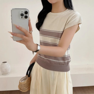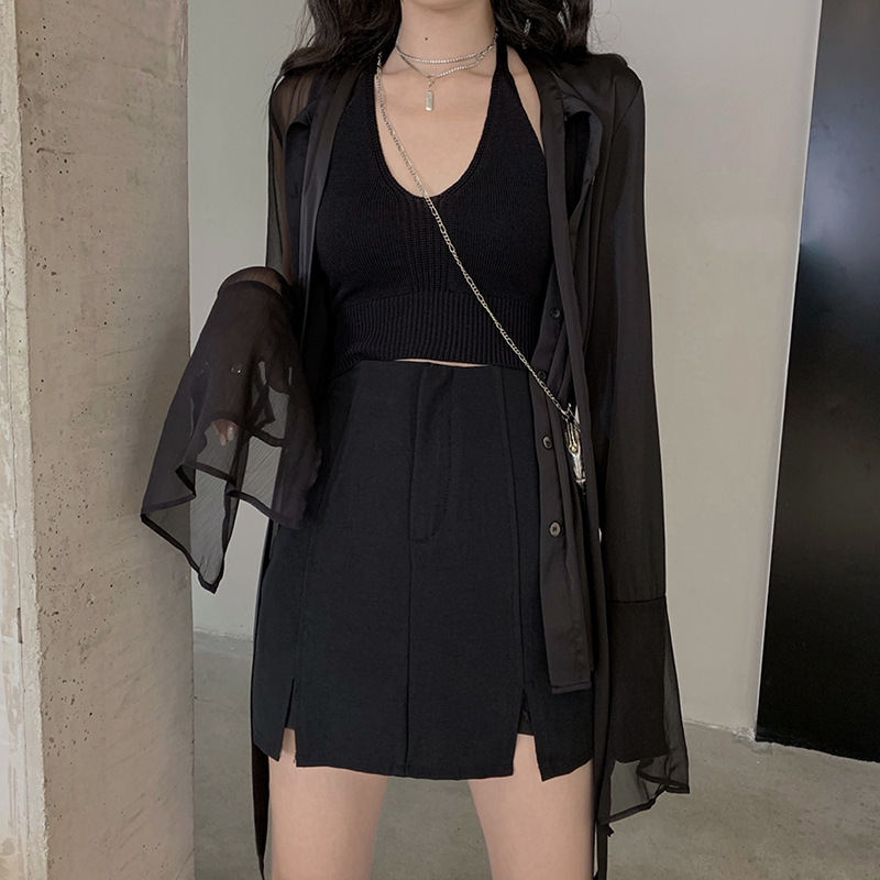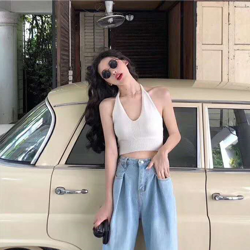 인터넷 연예인 여름 현아 바 튀는 짧은 V-넥 슬림핏 타이트 웨이스트 걸이 넥 베이스 니트 캐미솔스토어 가기