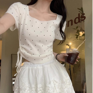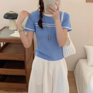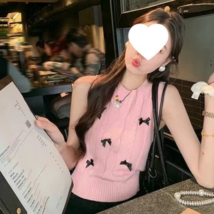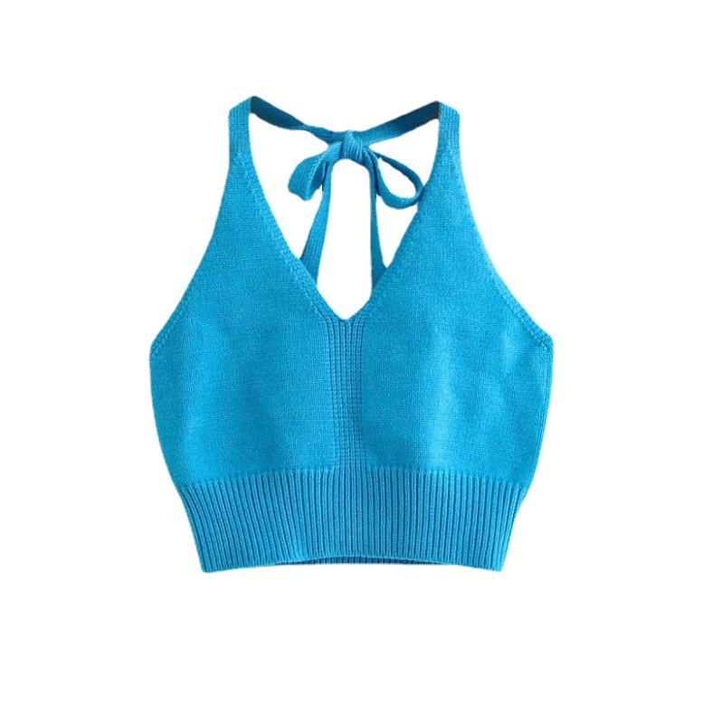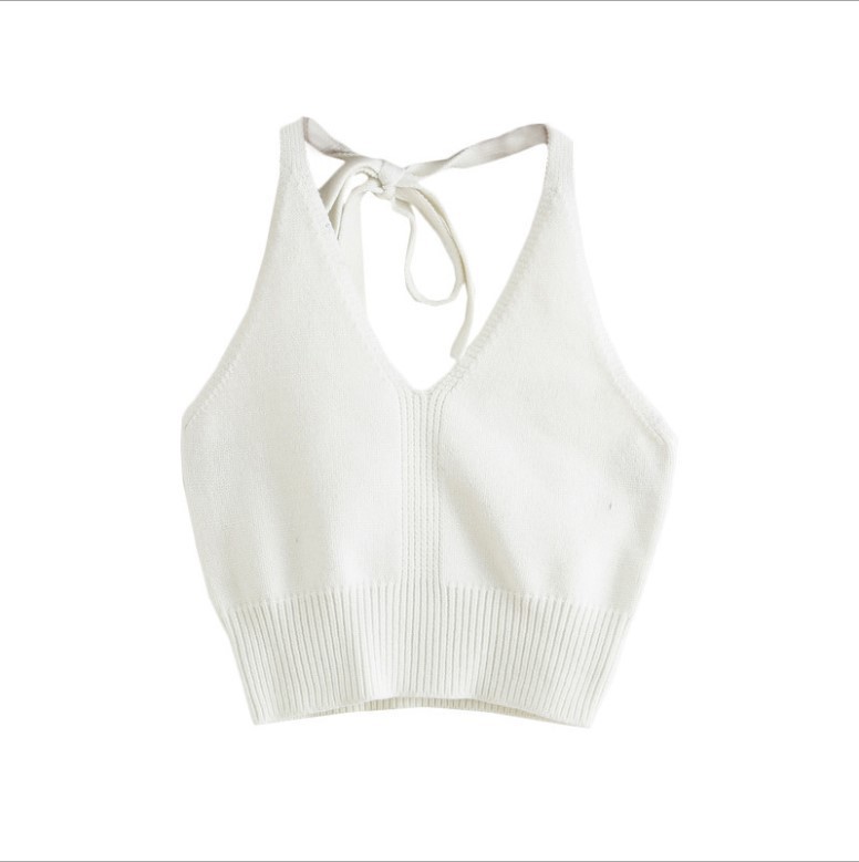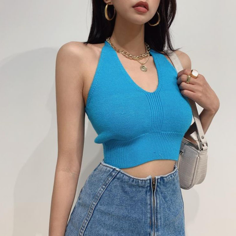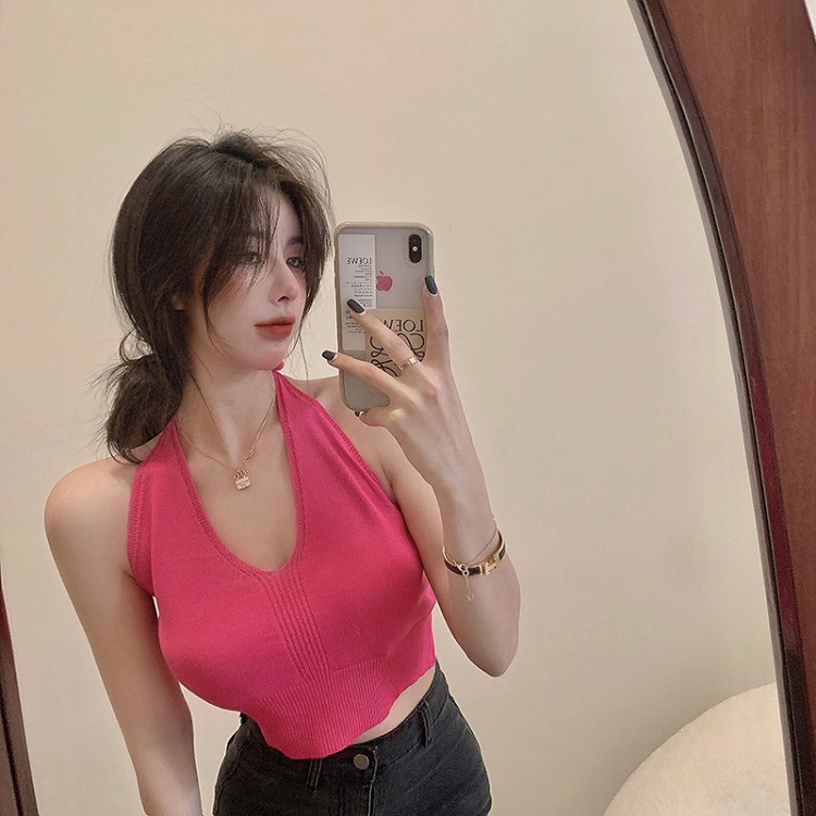 인터넷 연예인 여름 현아 바 튀는 짧은 V-넥 슬림핏 타이트 웨이스트 걸이 넥 베이스 니트 캐미솔