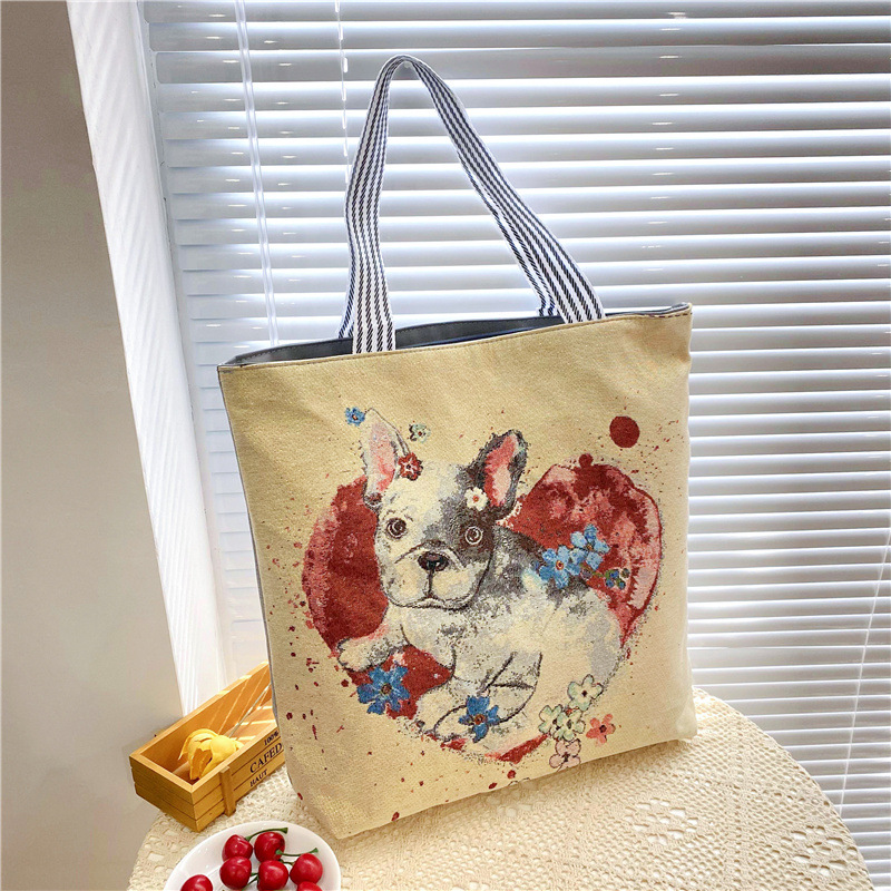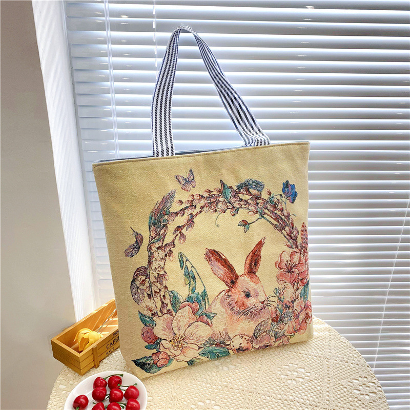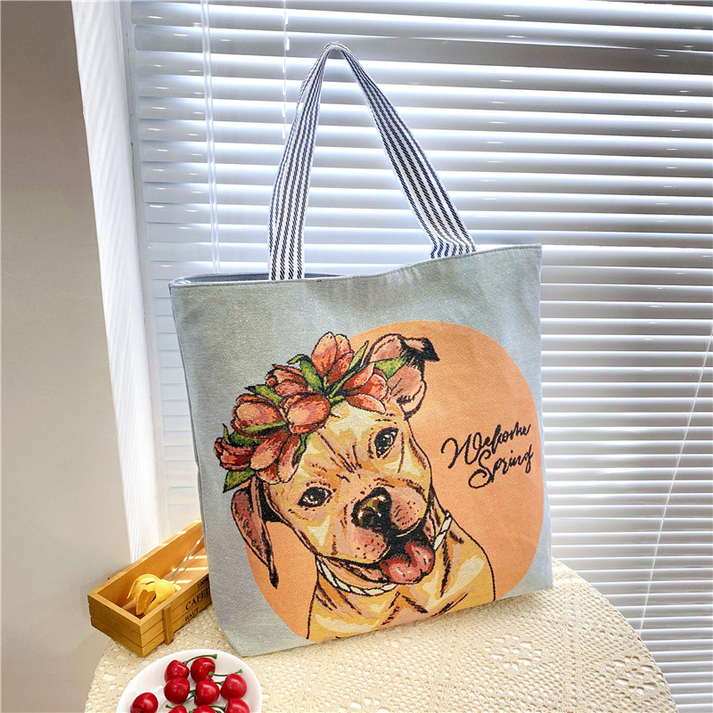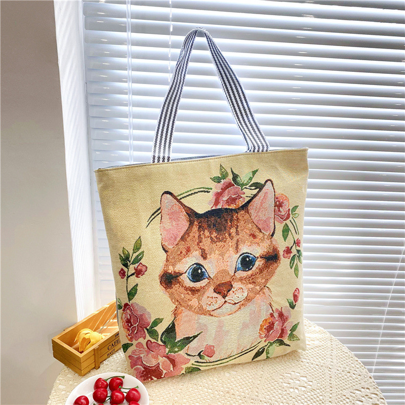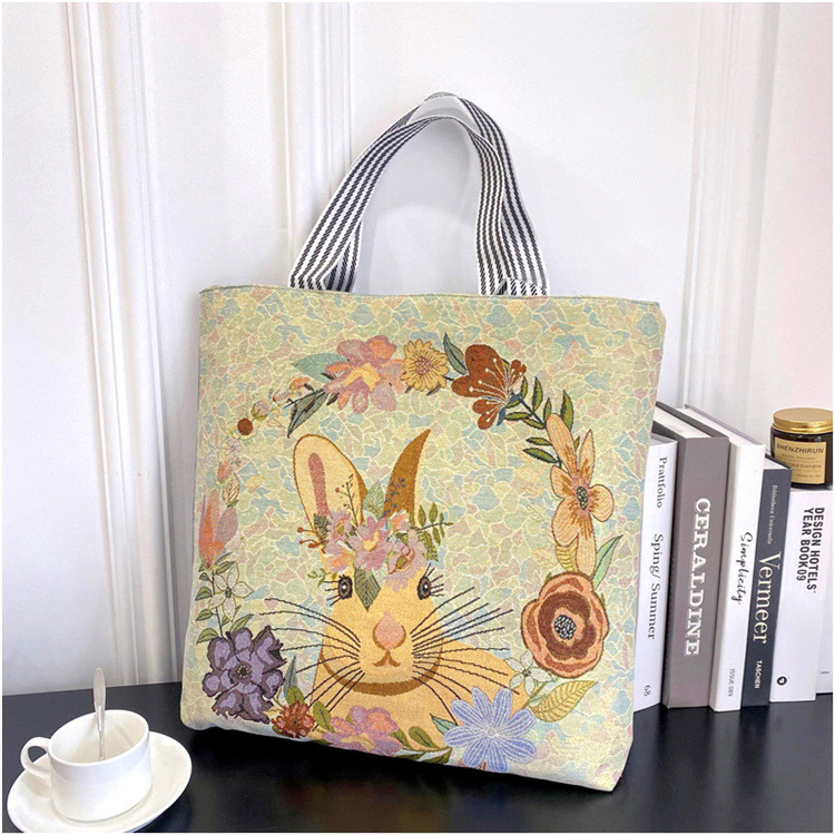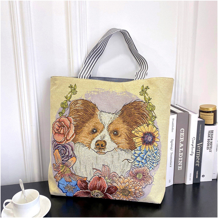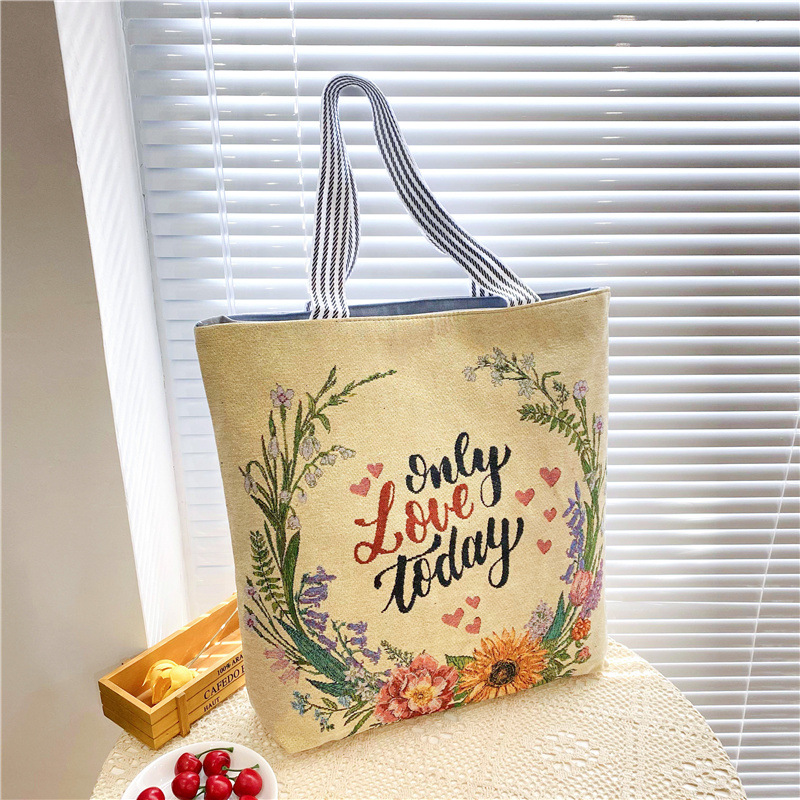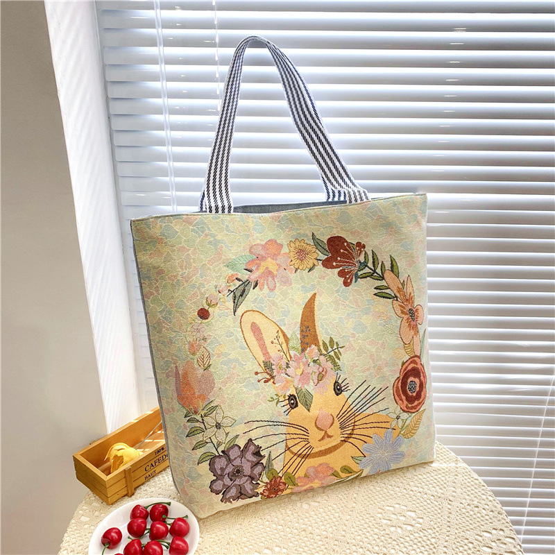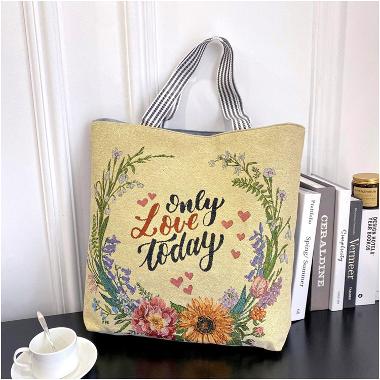 크로스 보더 공급 숄더백 인터넷 인기 상품 라이브 캐주얼 자카드 골드 실크 자수 캔버스 백 토트백 대형 가방