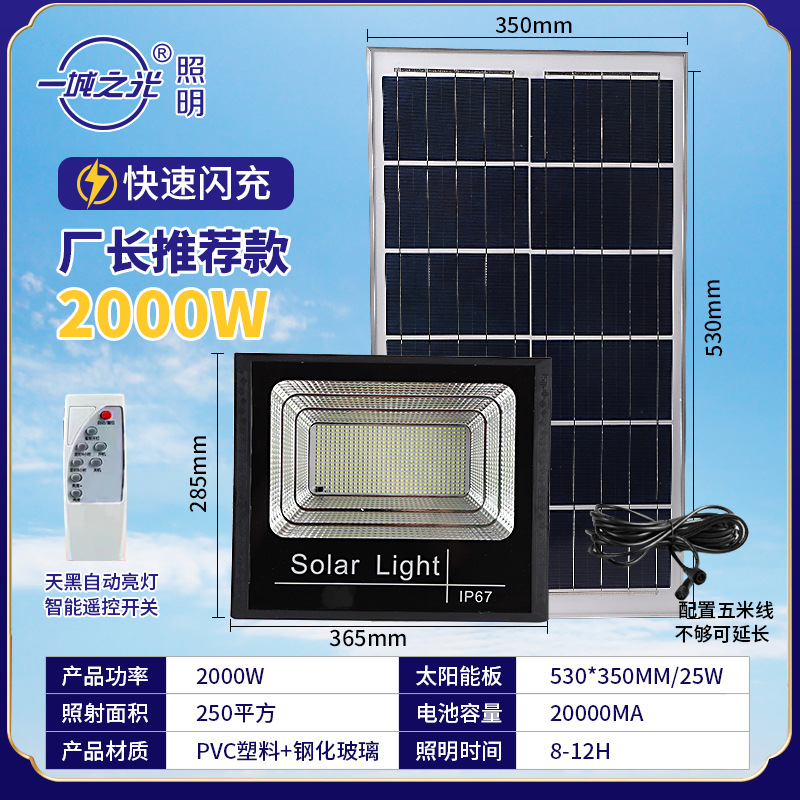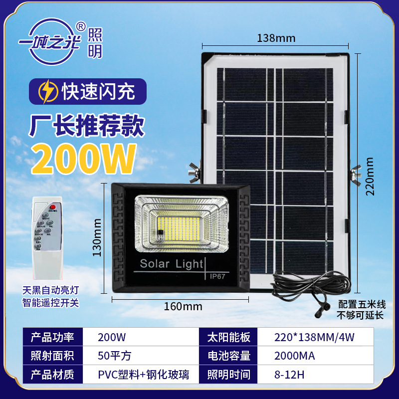 태양 광 조명 야외 투광 조명 Huimin 가정 안뜰 조명 농촌 가로등 공장 직접 500W200W스토어 가기
