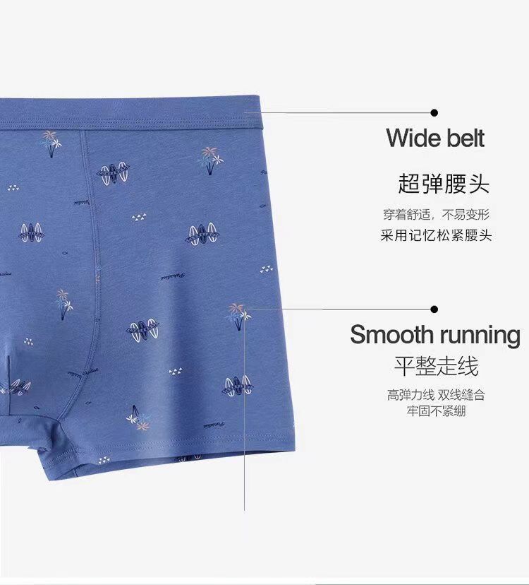 순수 코튼 남성 속옷 복서 팬티 도매 중간 허리 대형 통기성 십대 소년 복서 팬티 제조 업체 공급스토어 가기