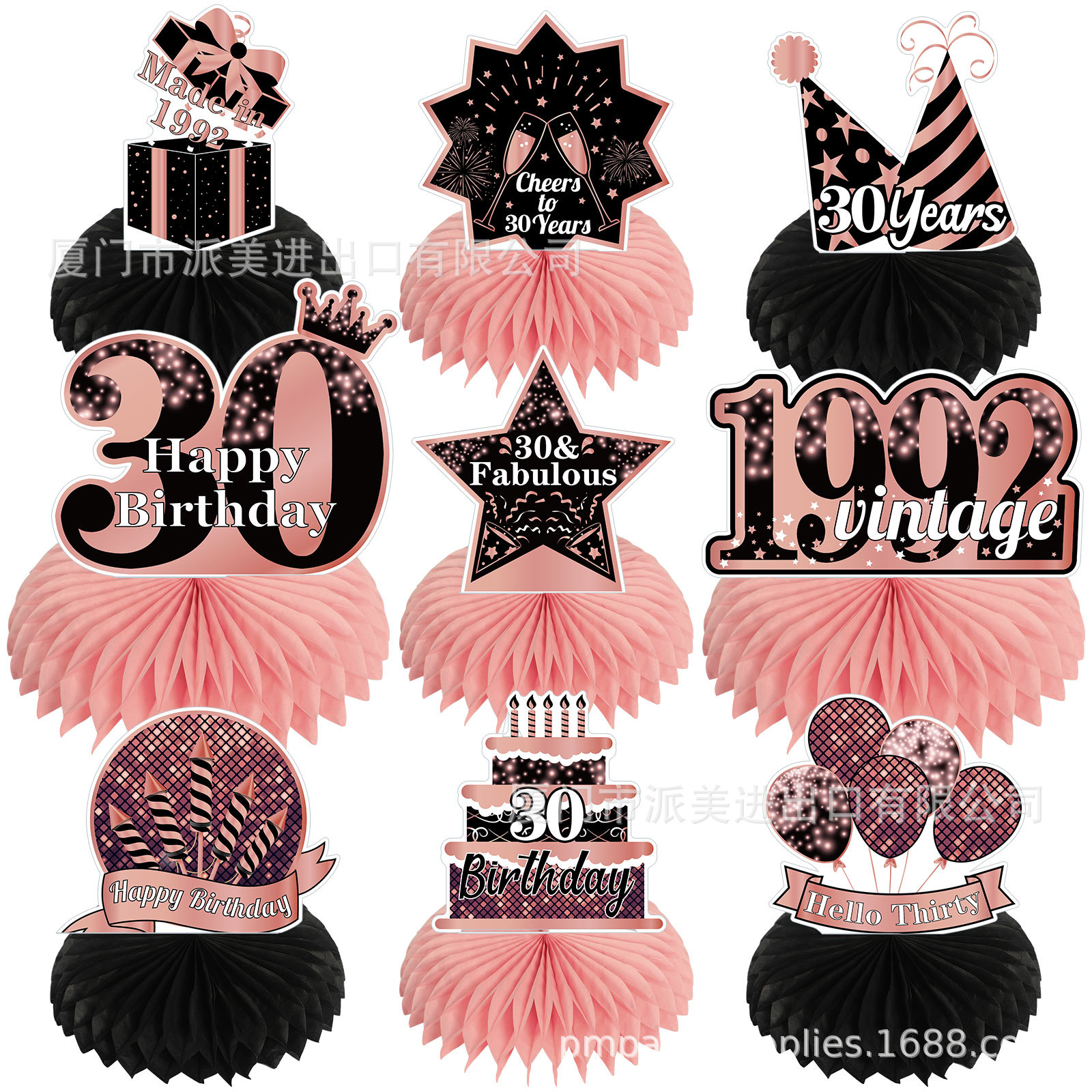 产品信息:30岁玫瑰金系生日蜂窝摆件岁数年龄摆台30岁40岁50岁60岁派对装饰