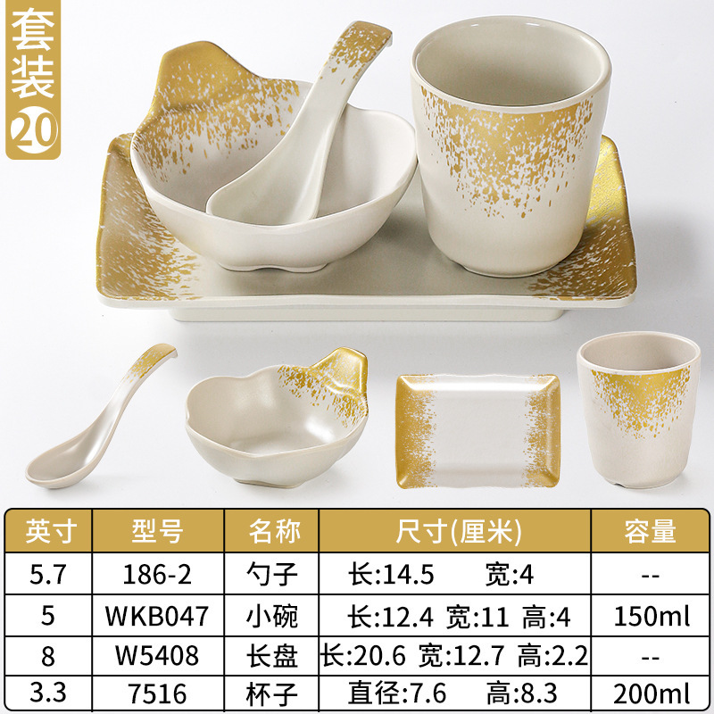 멜라민 A5 식기 테이블 4 조각 세트 상업 냄비 레스토랑 호텔 특별 모방 도자기 세트 그릇 접시 컵