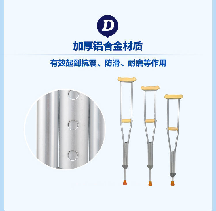 두꺼운 알루미늄 합금 지팡이, 텔레스코픽 9단 조절식 리프팅 지팡이, 노인 및 장애인을 위한 겨드랑이 미끄럼 방지 이중 지팡이, 안정적