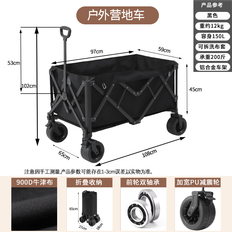 대형 캠프카 야외 접이식 카트 피크닉 캠핑 손으로 끄는 자동차 모임 휴대용 텐트 트레일러 캠핑카스토어 가기