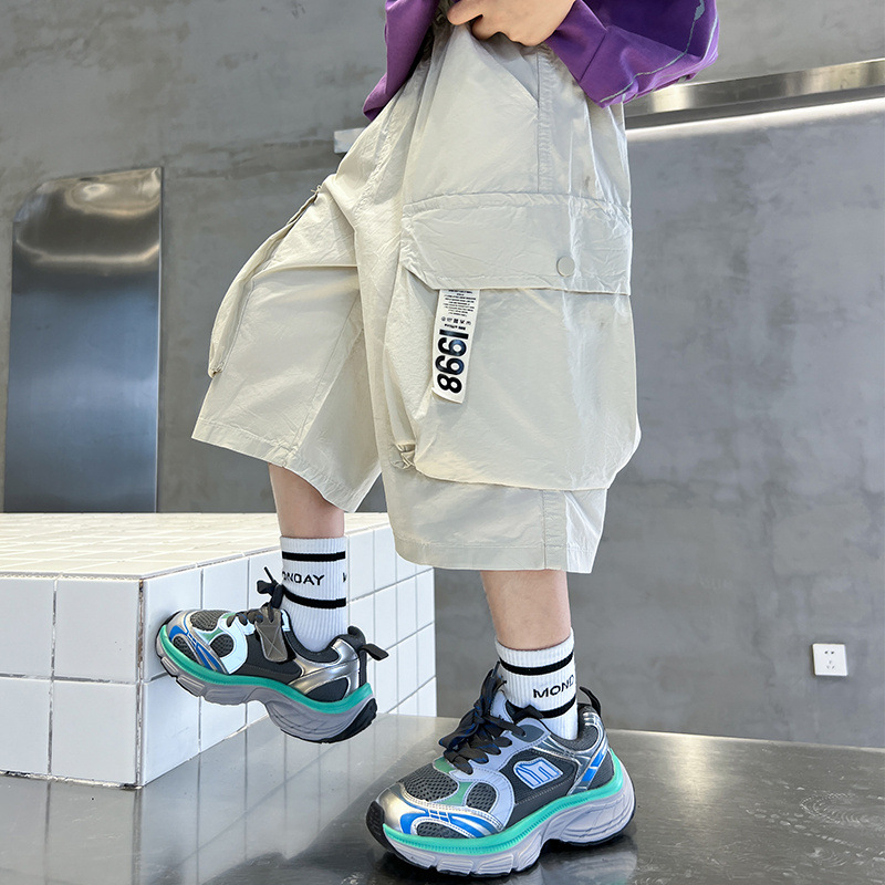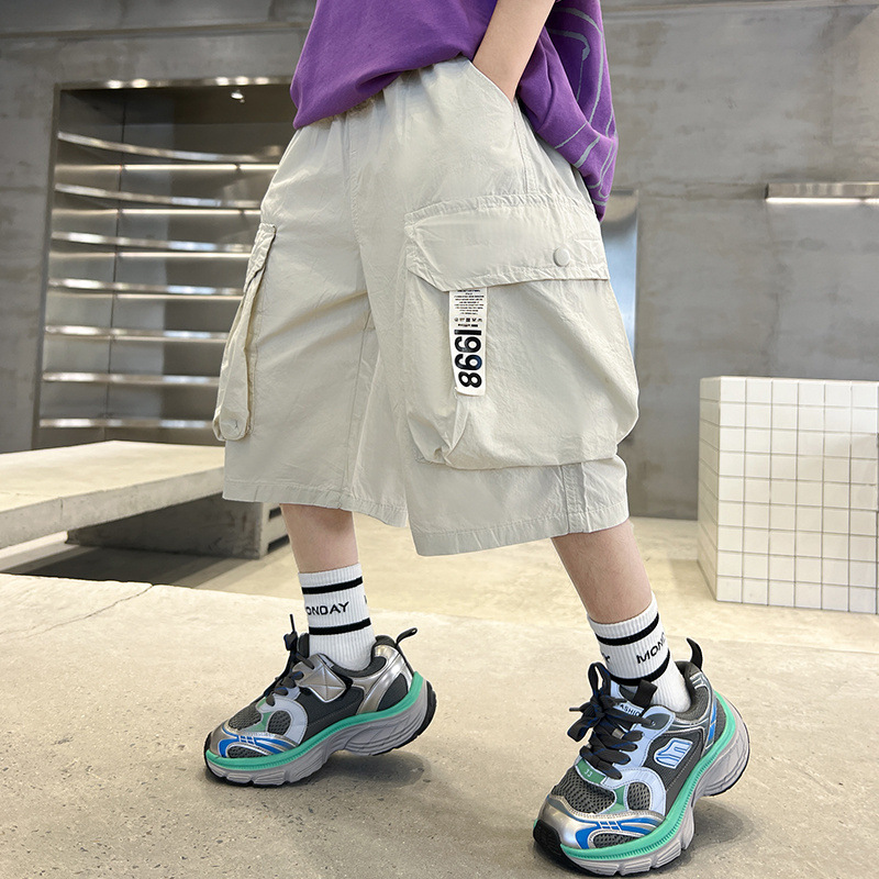 남아 작업복 바지 여름 얇은 스타일 스트리트 패션 아동 반바지 중대형 아동 캐주얼 중간 길이 바지 2025 신상 트렌디