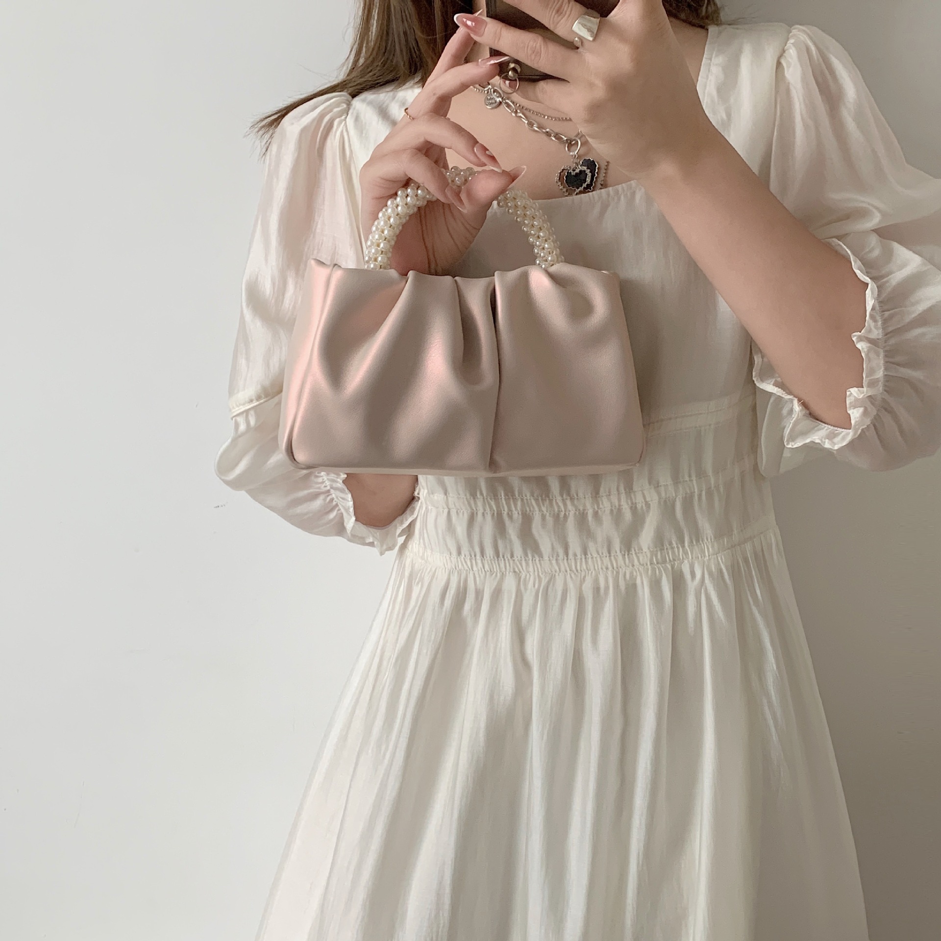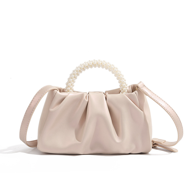 가방 여성의 2024 새로운 유행 유행 라운드 펄 휴대용 주름진 구름 가방 틈새 우아한 어깨 크로스 바디 백