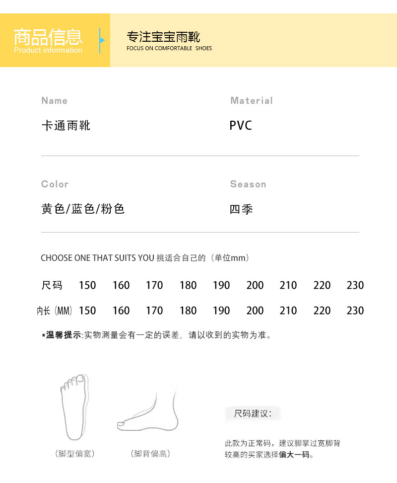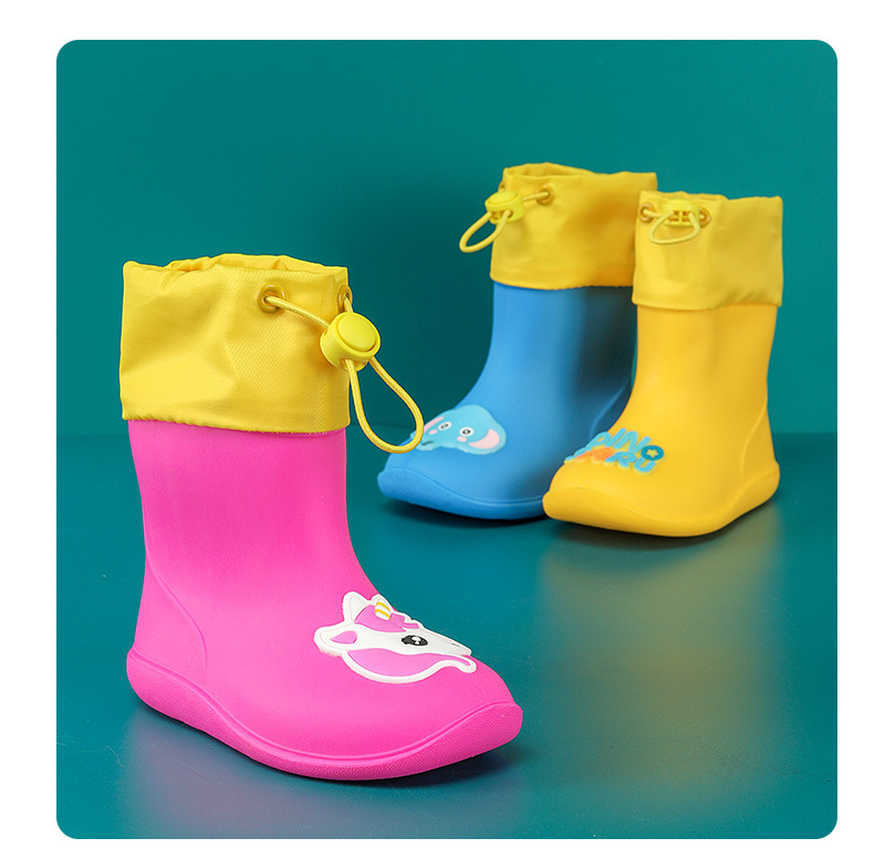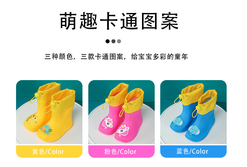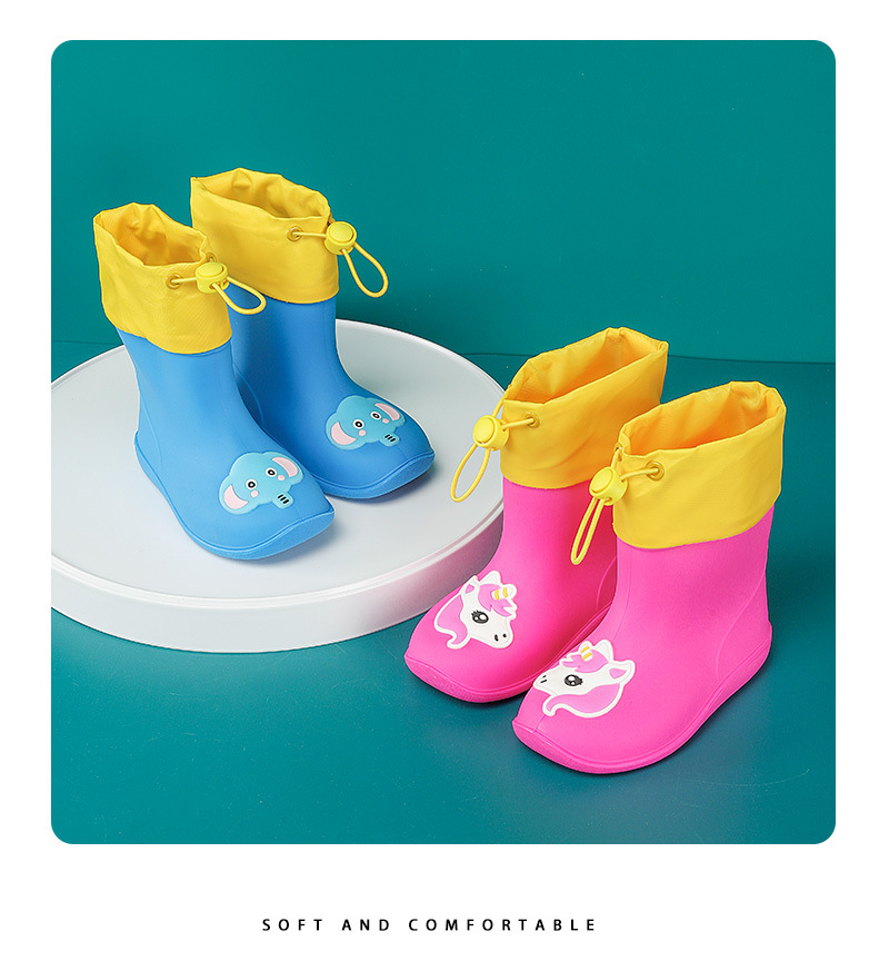 어린이 소녀 방수 장화 소년과 소녀 귀여운 만화 PVC 미끄럼 방지 편안한 물 신발 기모 장화