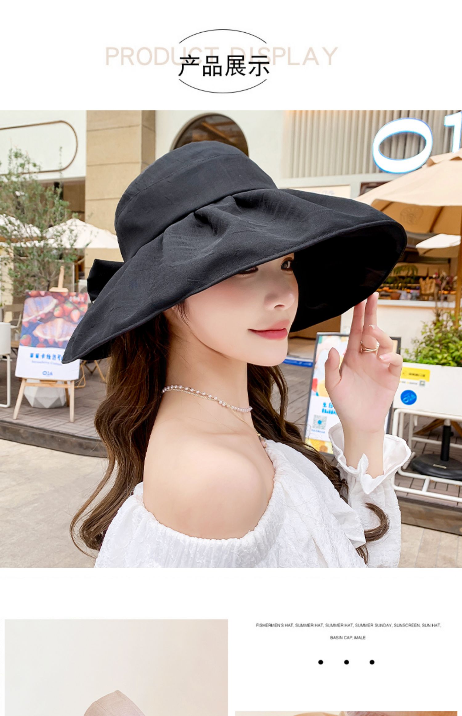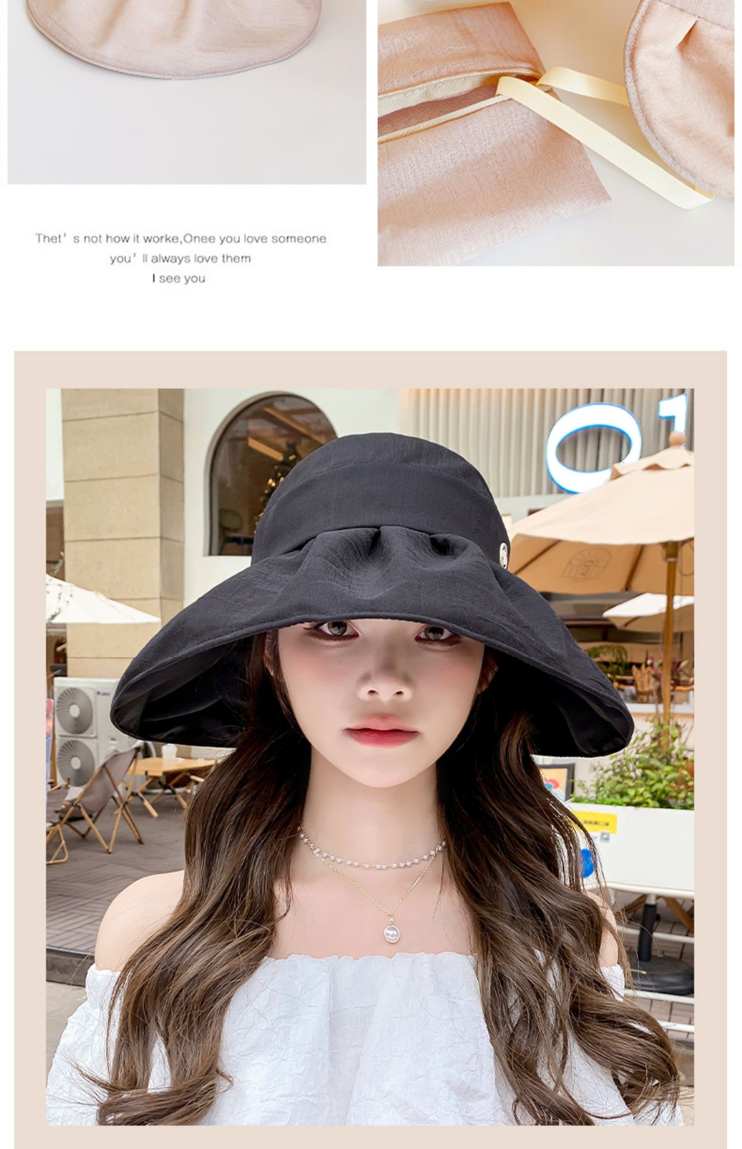 태양 모자 여성용 빈 탑 대형 처마 접이식 여름 여행 자외선 차단 태양 모자 한국식 보우 비치 모자스토어 가기