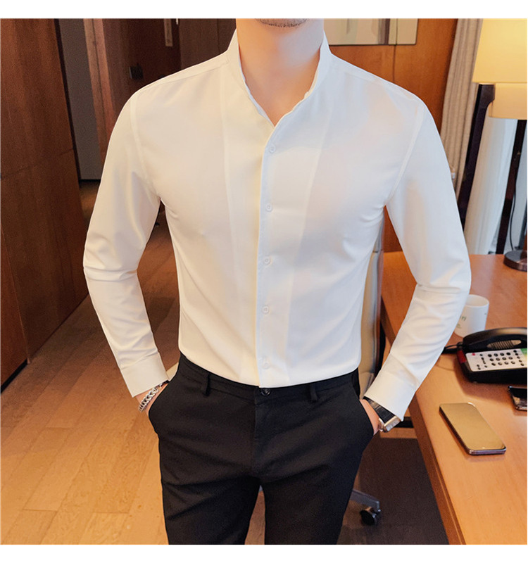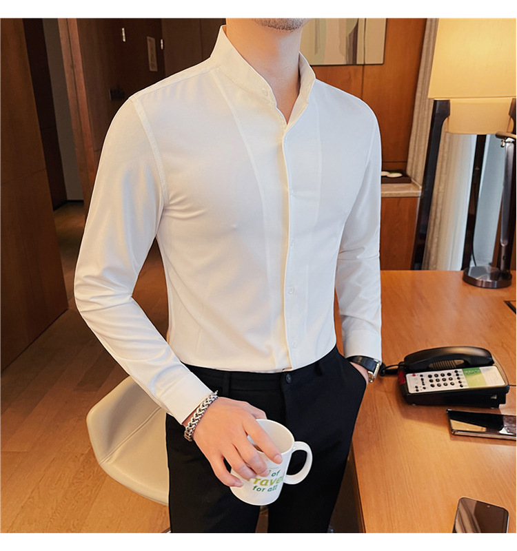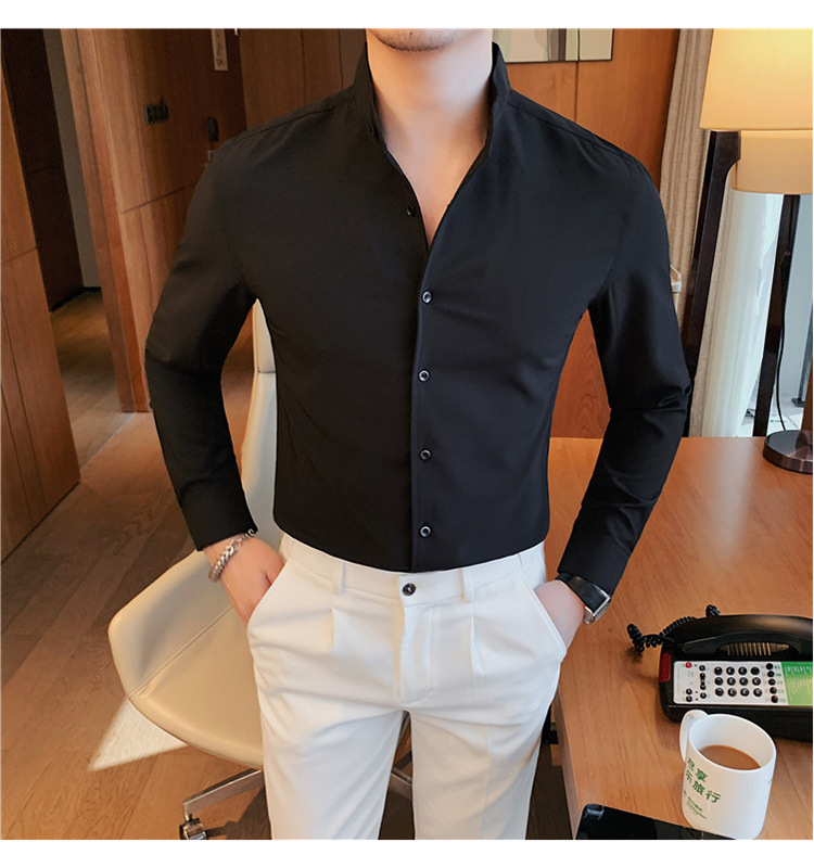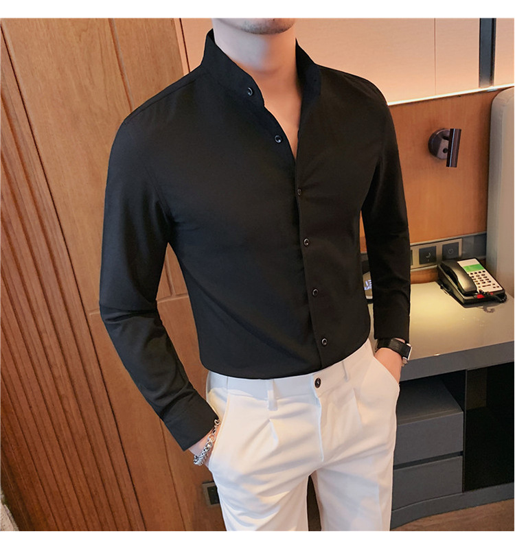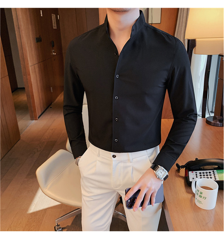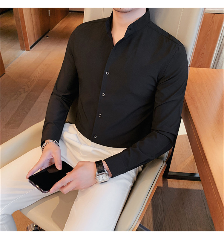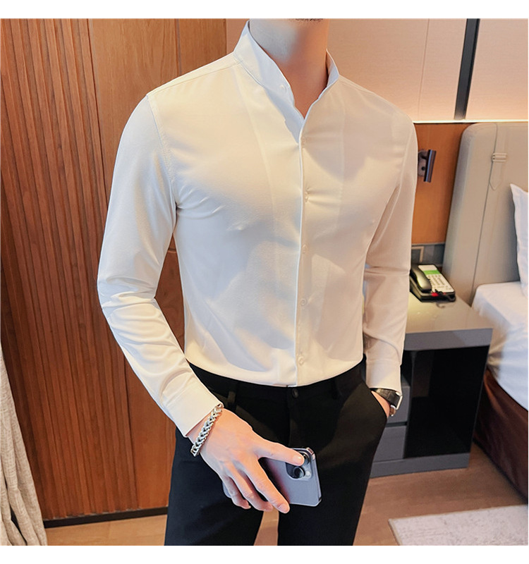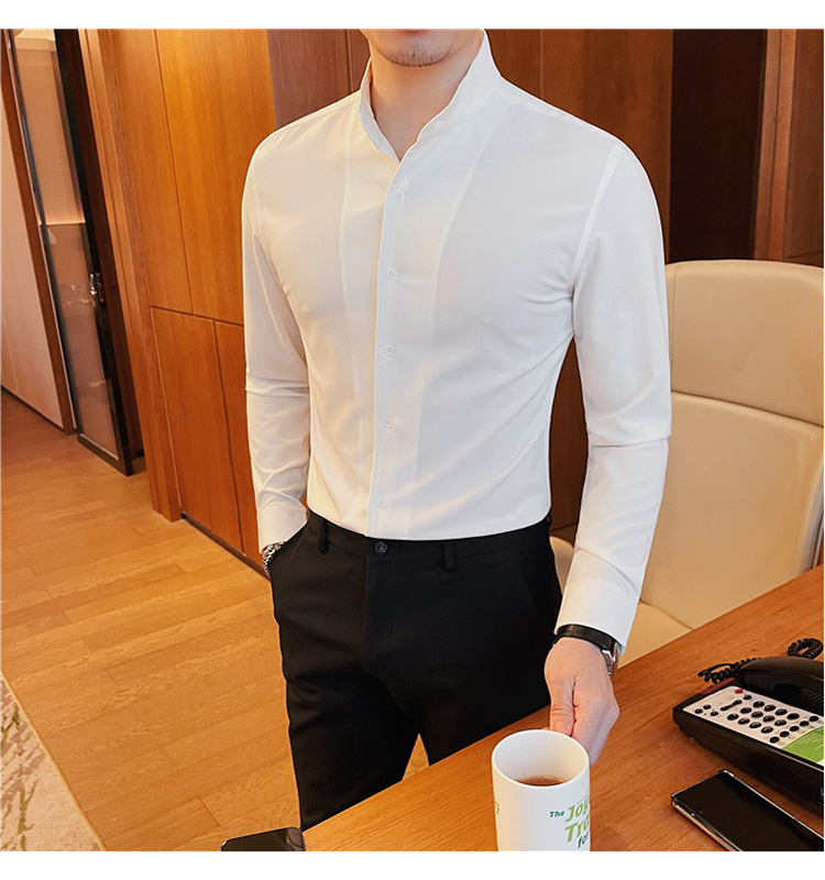 남성용 슬림핏 캐주얼 셔츠, 봄 여름 얇은 신축성 셔츠, 라이브 방송 공급스토어 가기