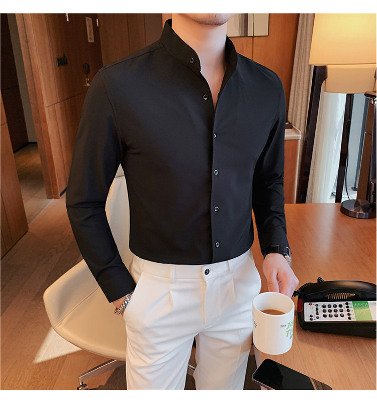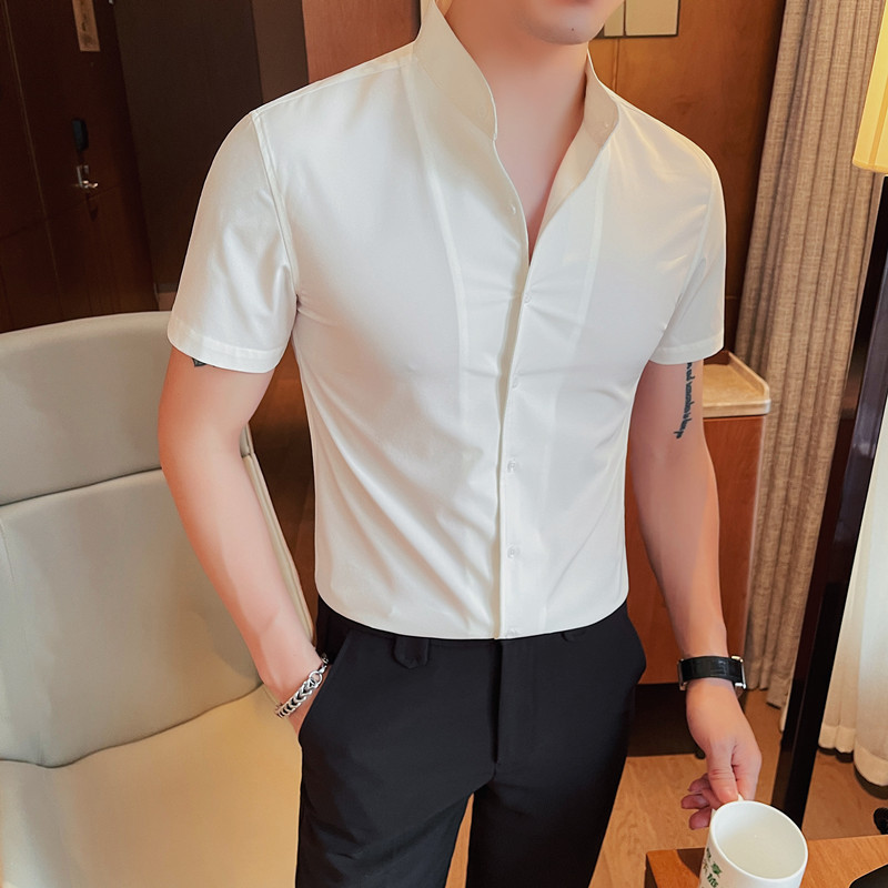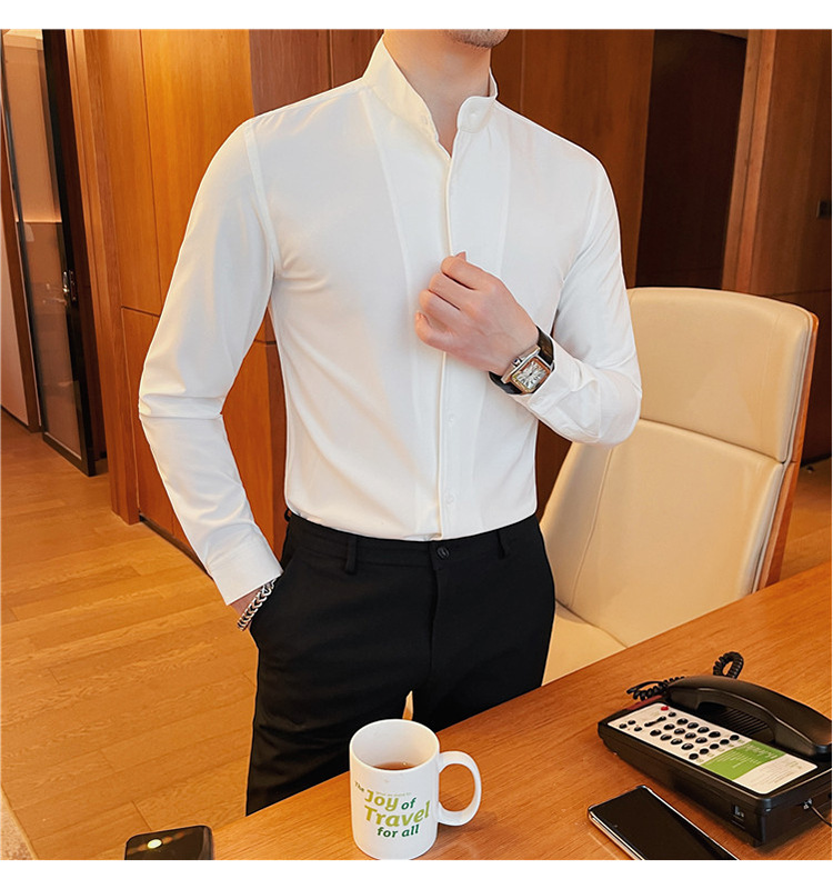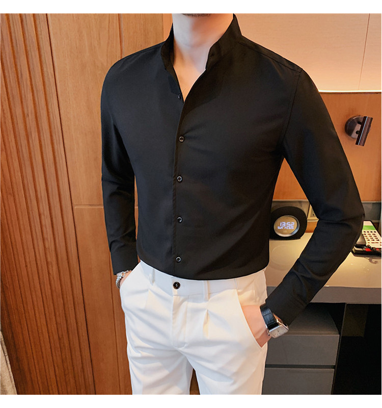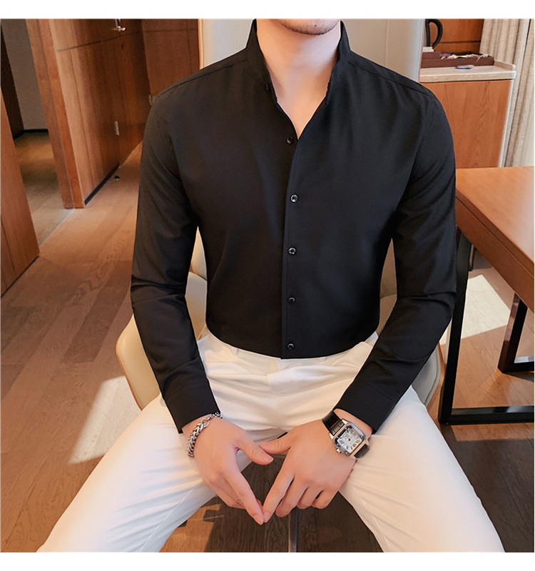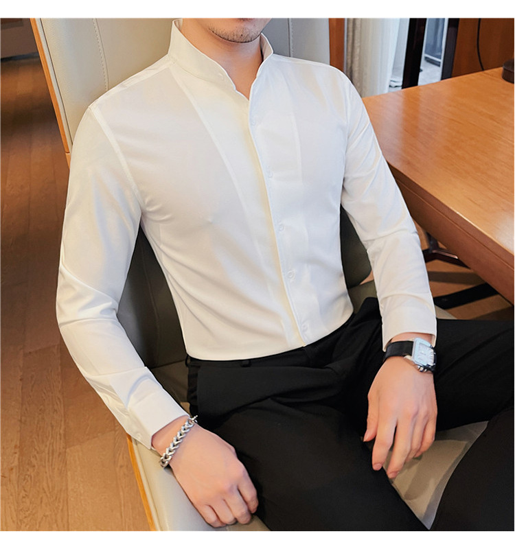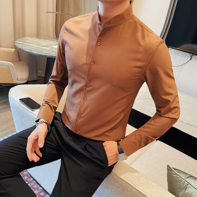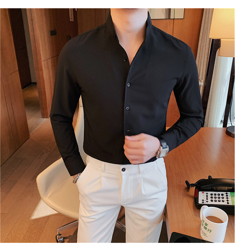 남성용 슬림핏 캐주얼 셔츠, 봄 여름 얇은 신축성 셔츠, 라이브 방송 공급스토어 가기