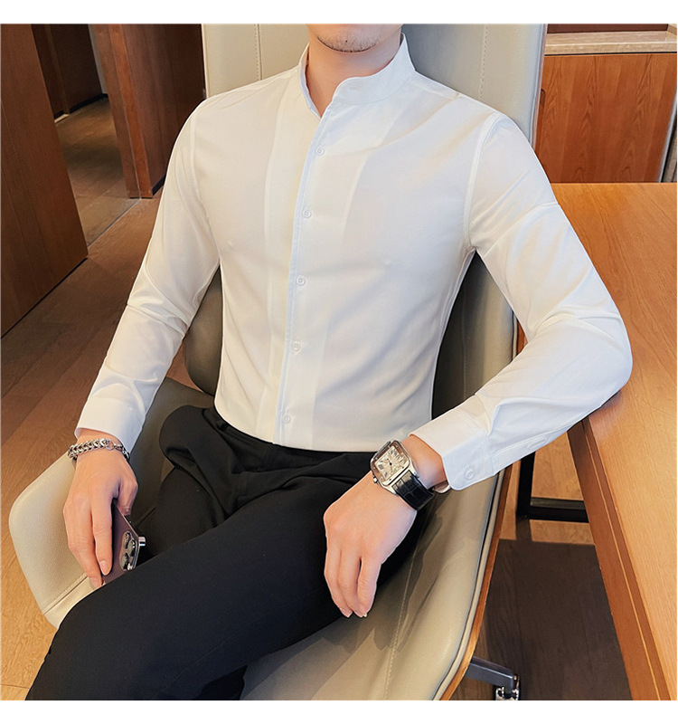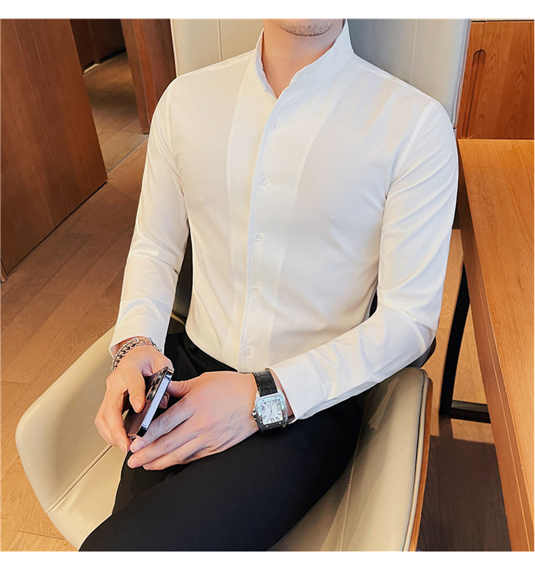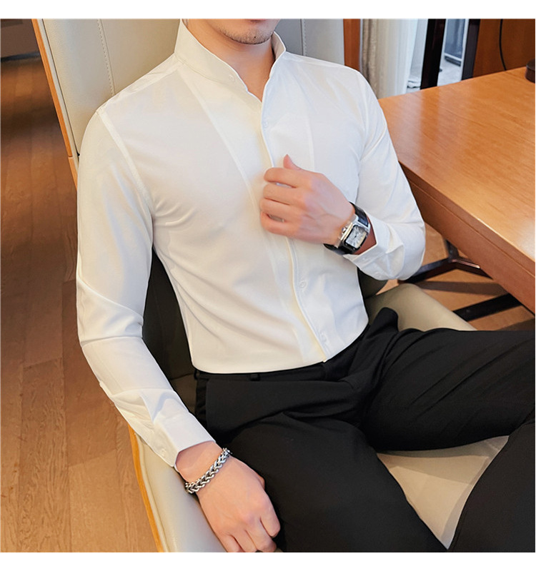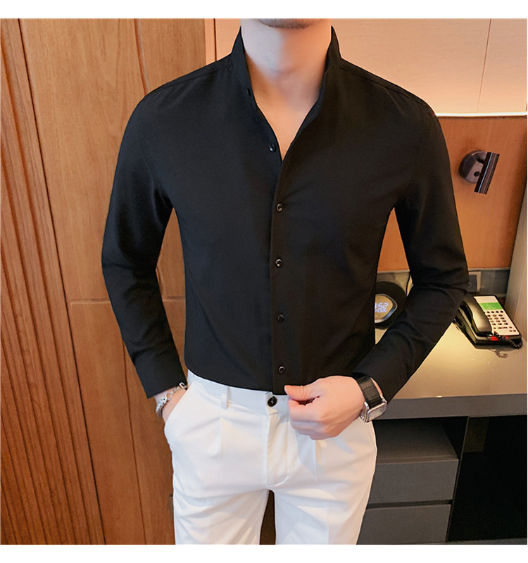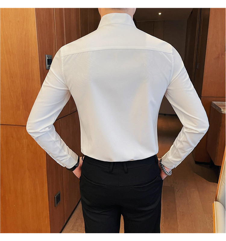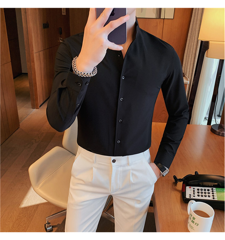 남성용 슬림핏 캐주얼 셔츠, 봄 여름 얇은 신축성 셔츠, 라이브 방송 공급