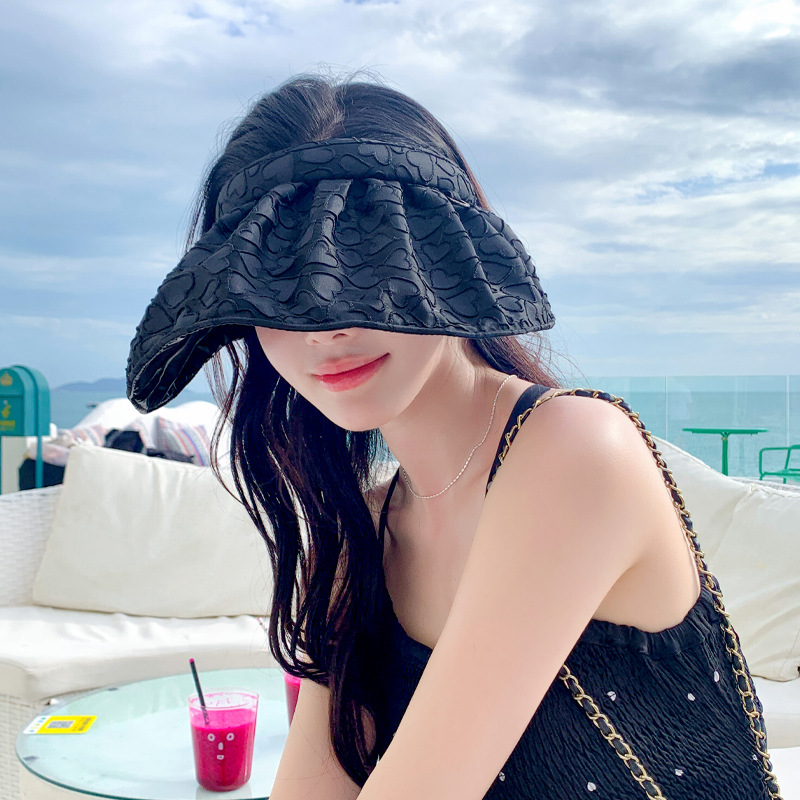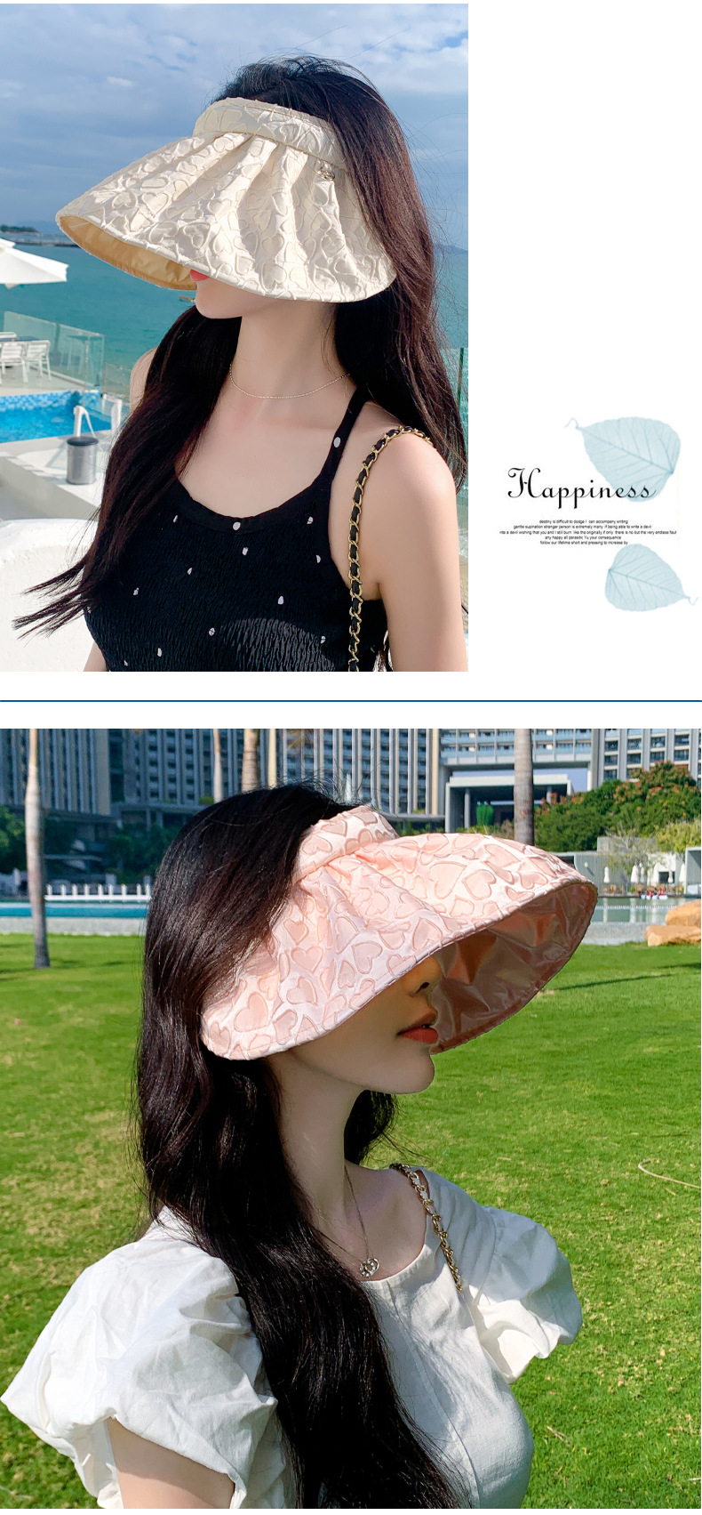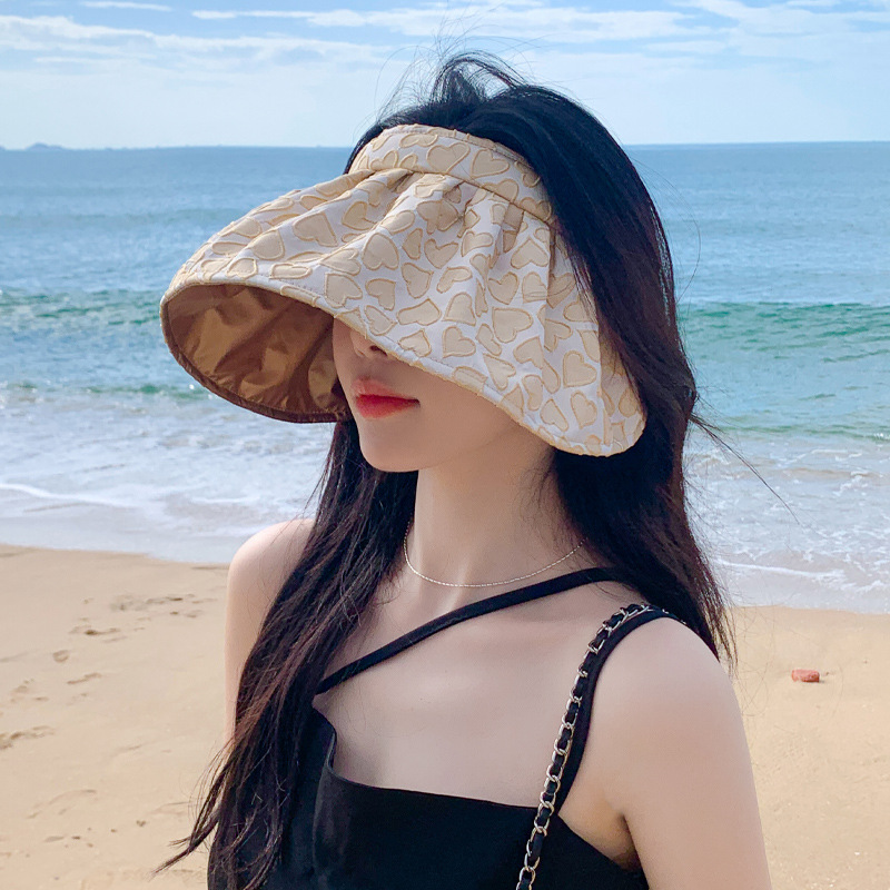 2023 한국 스타일 모자 여성용 그물 붉은 복숭아 하트 컬러 접착제 태양 보호 빈 탑 태양 모자 여름 야외 여행 큰 림 태양 모자스토어 가기