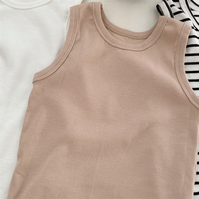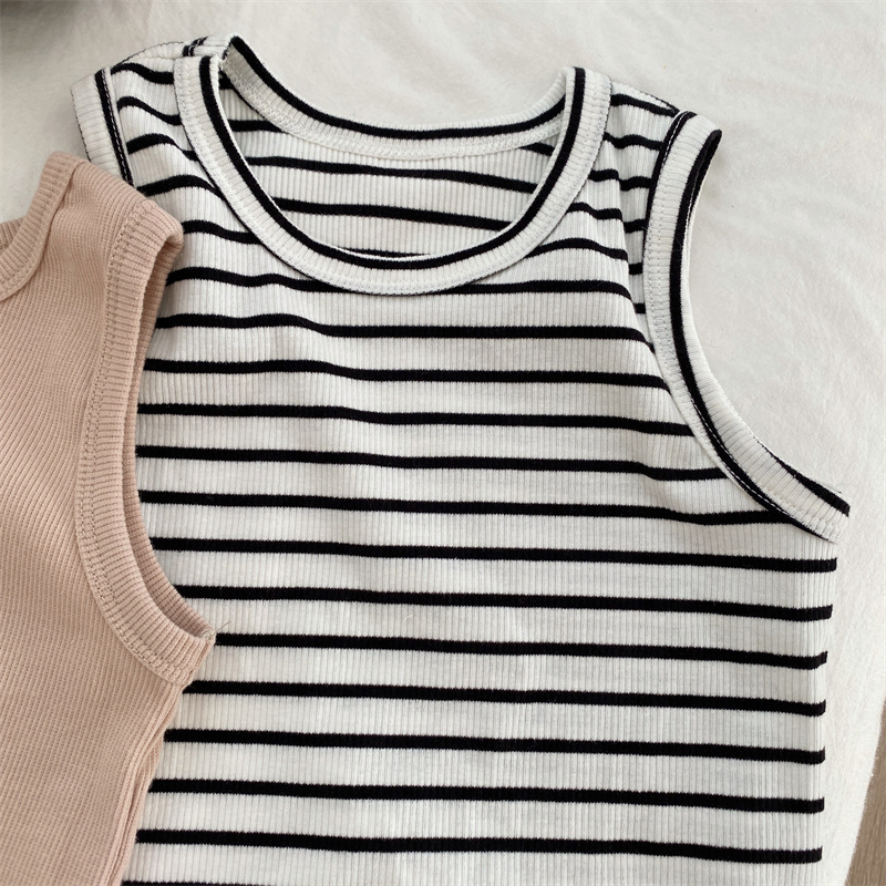 Xintian 2023 여름 새로운 한국 아동복 어린이 탄성 니트 조끼 아기 민소매 탑
