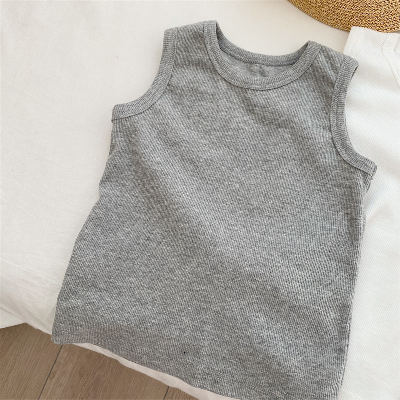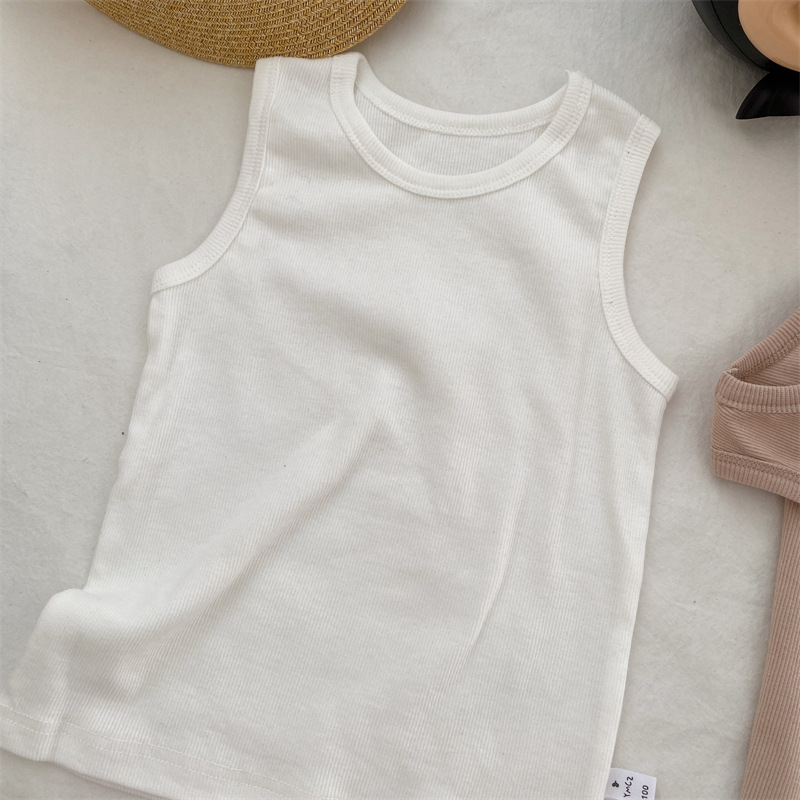 Xintian 2023 여름 새로운 한국 아동복 어린이 탄성 니트 조끼 아기 민소매 탑스토어 가기