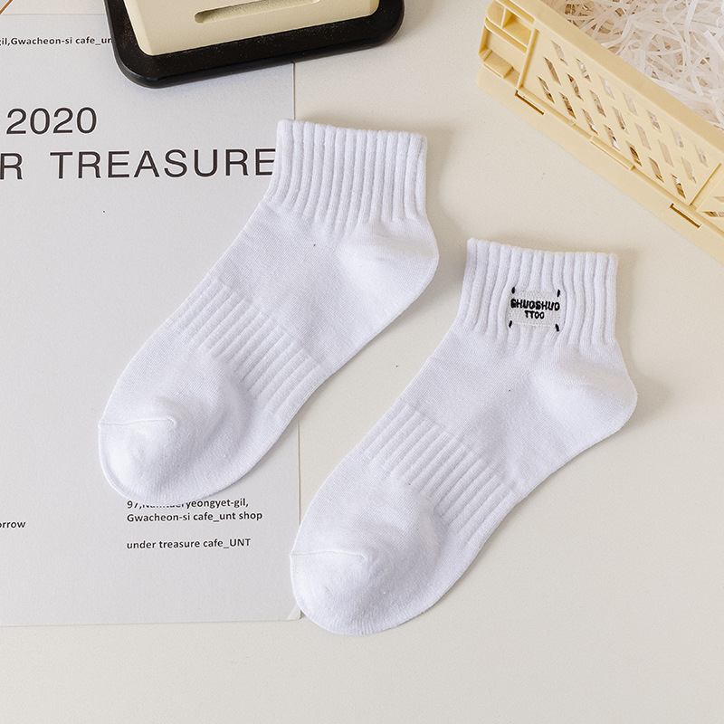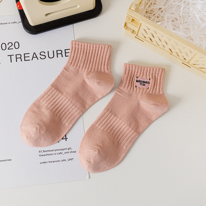 이른 봄 새로운 세로 줄무늬 편지 자수 발 허리 여자 보트 양말 면 양말 유행 일본 학생 짧은 양말