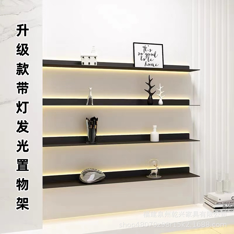 가벼운 파티션 철제 디스플레이 랙 벽걸이 거실 책장이있는 LED 라미네이트 발광 벽 금속 보관 랙스토어 가기