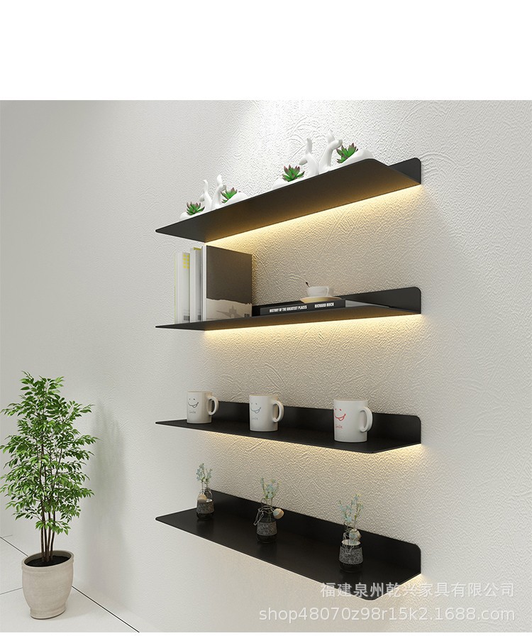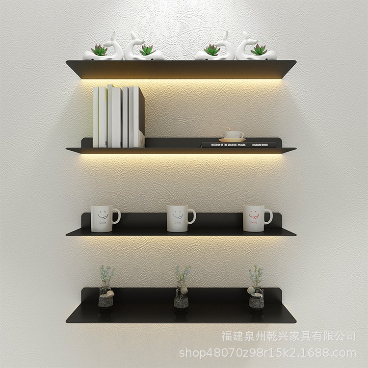 가벼운 파티션 철제 디스플레이 랙 벽걸이 거실 책장이있는 LED 라미네이트 발광 벽 금속 보관 랙
