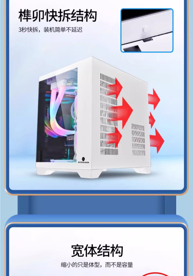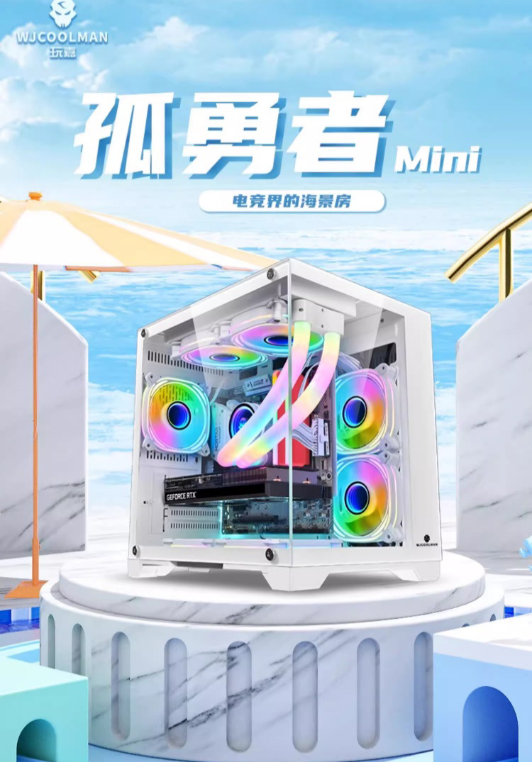 플레이 Jiagu 용감한 미니 바다 전망 룸 섀시 MATX 풀 사이드 유리 240 수냉식 칼럼없는 컴퓨터 섀시