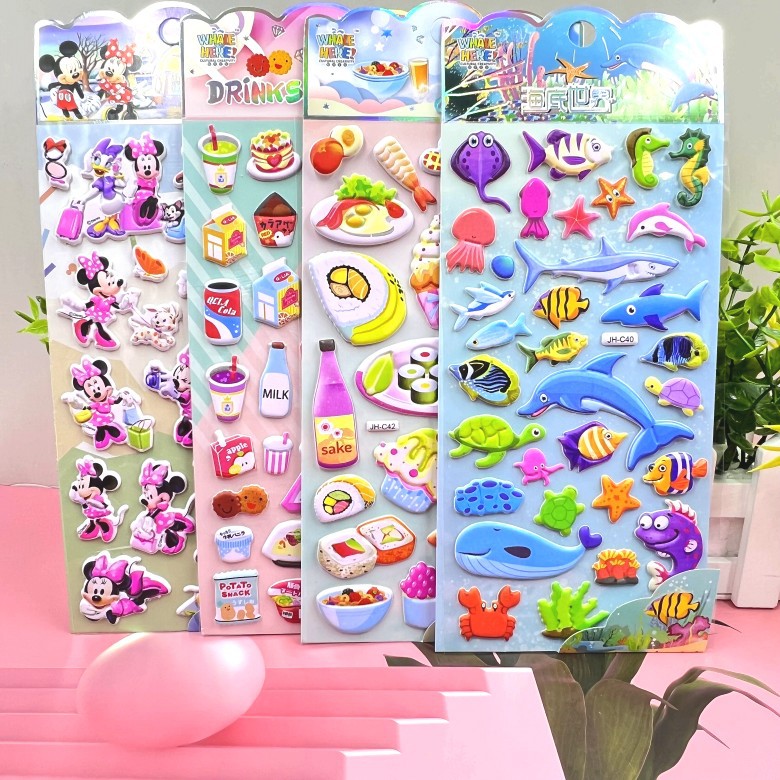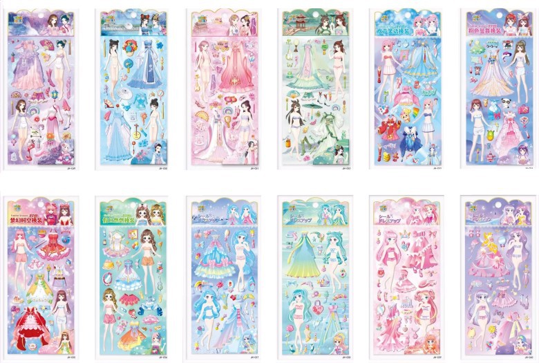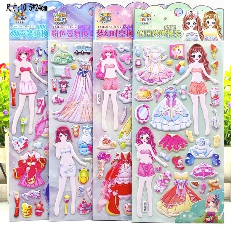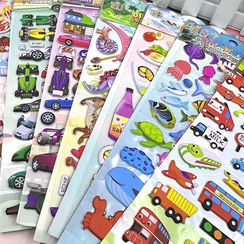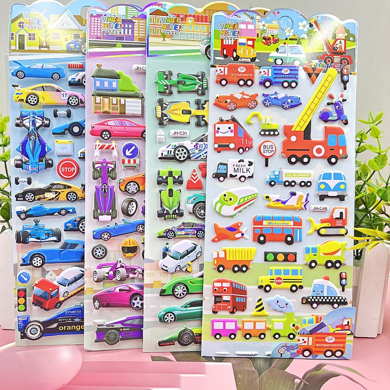 어린이 만화 스티커 히비스커스 가죽 소녀 옷 스티커 자동차 동물 거품 스티커 유치원 스티커