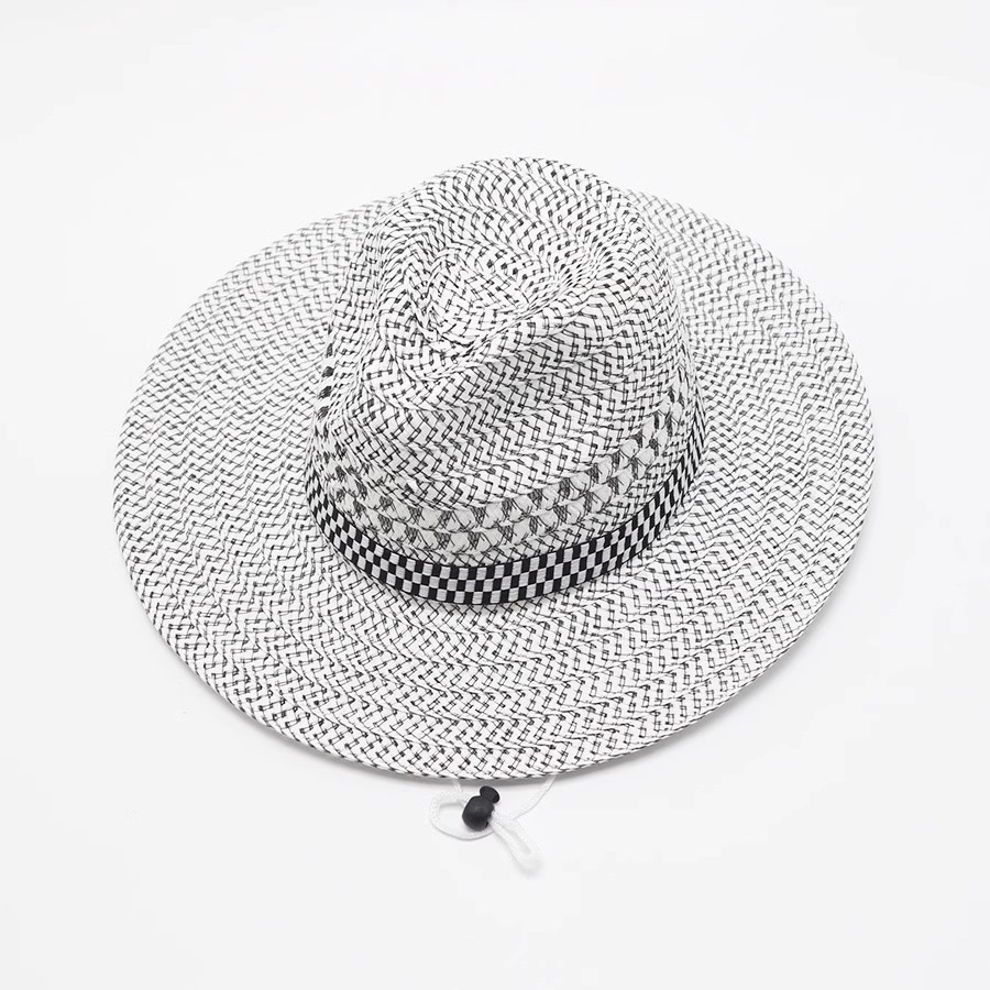 • 평면 가장자리 흑백 격자 종이 밀짚 모자 회색
