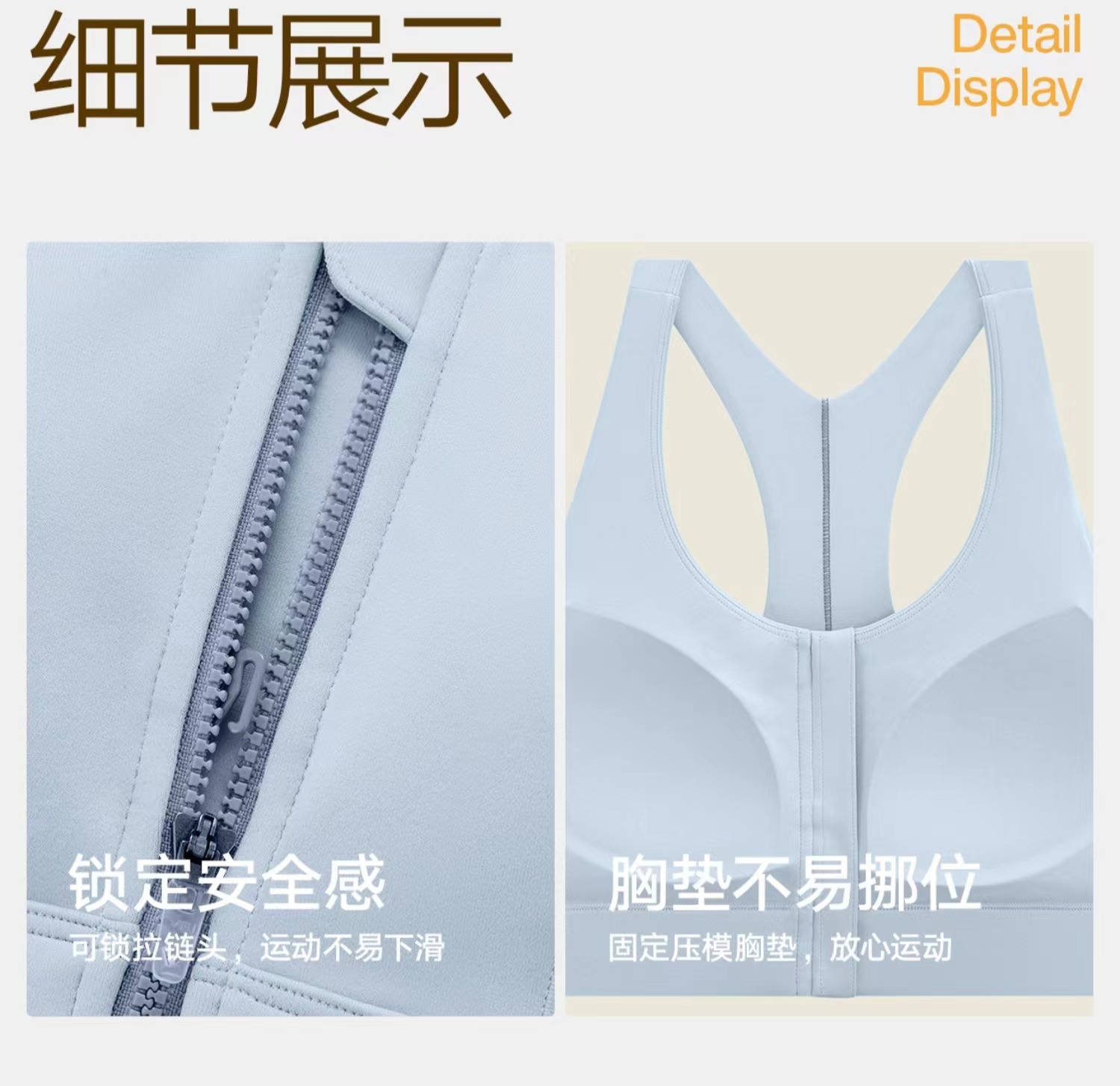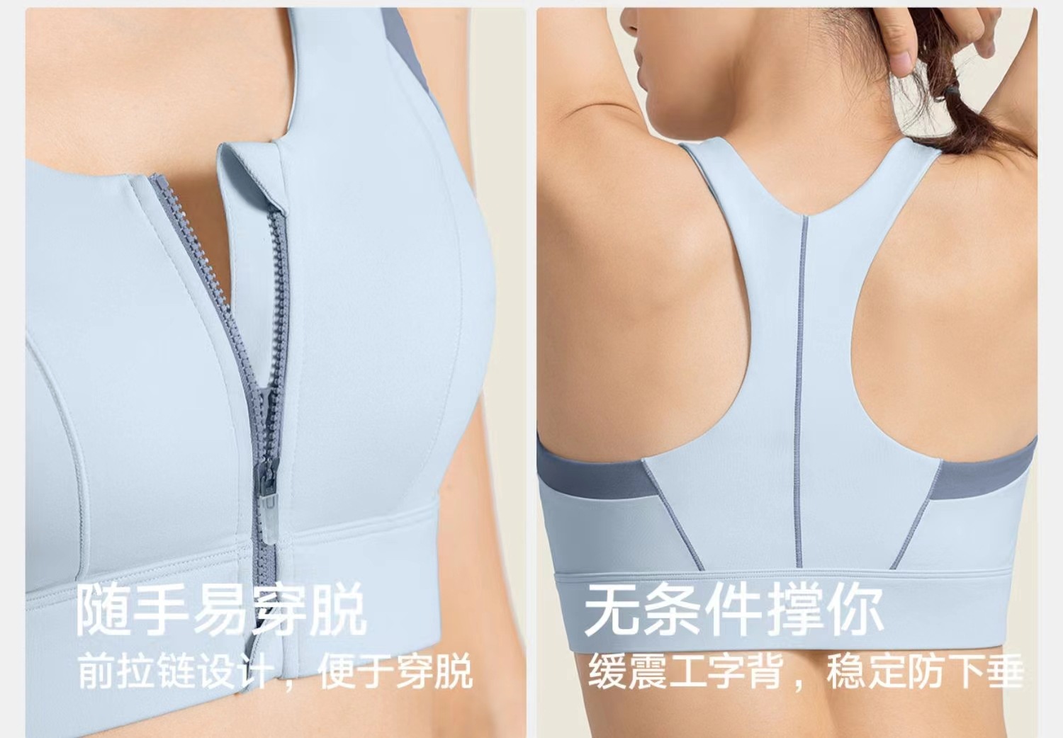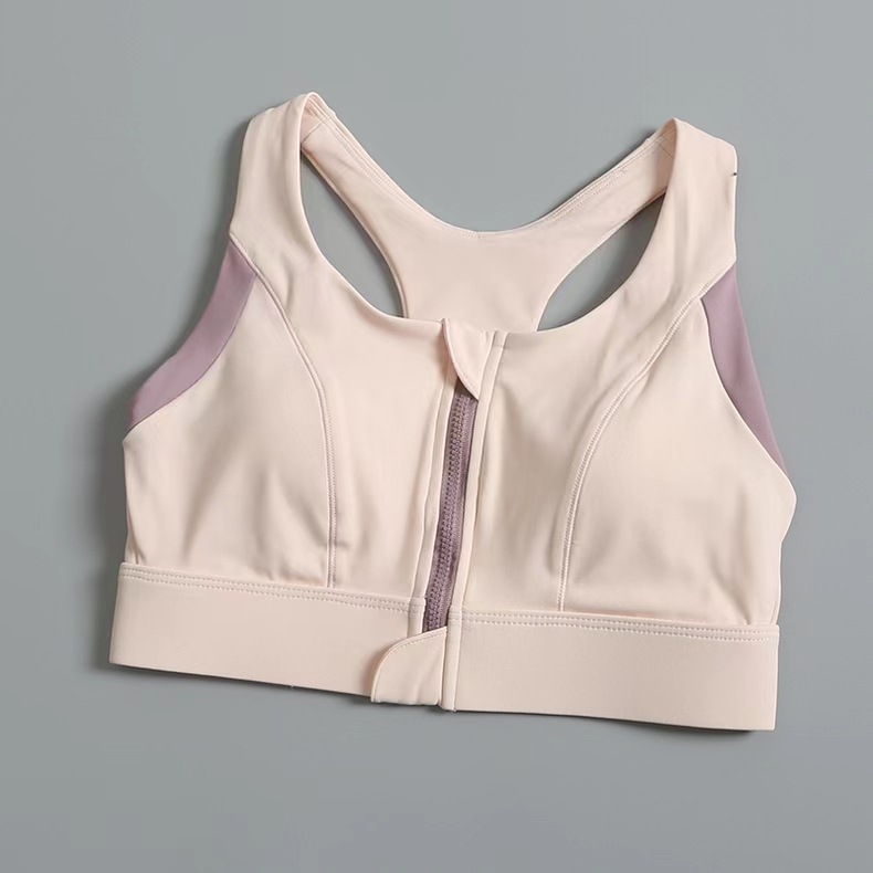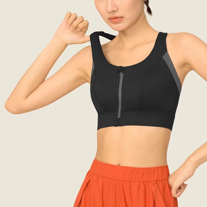 여성용 고강도 프론트 지퍼 컬러 매칭 스포츠 속옷 착용 및 제거가 쉬운 여성용 충격 방지 요가 브라 러닝 조끼스토어 가기