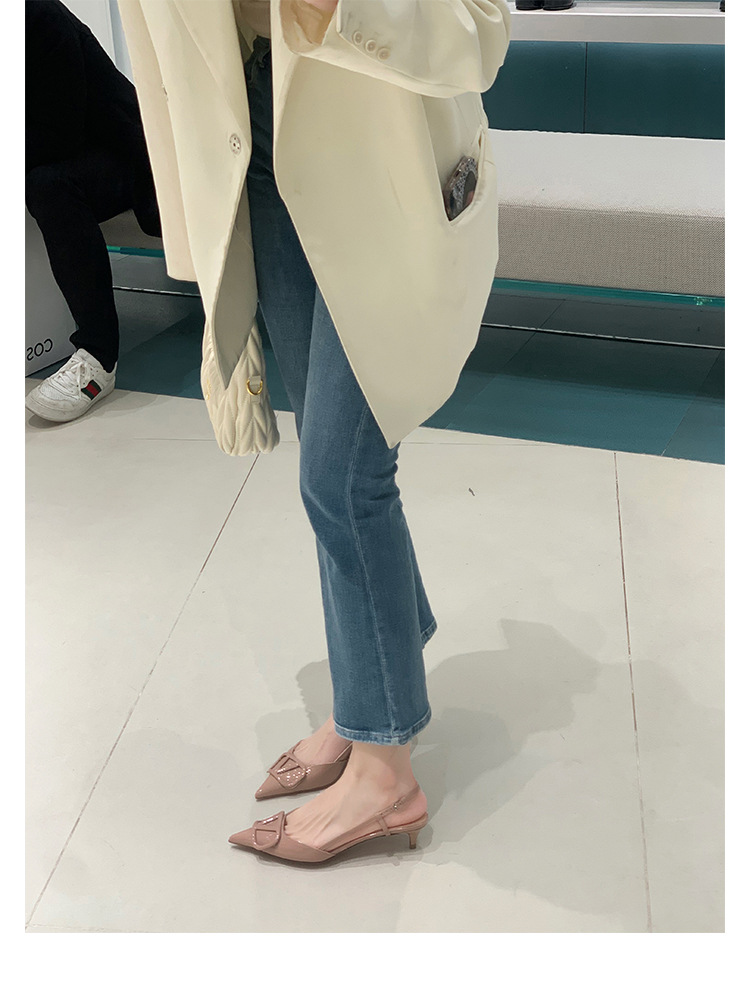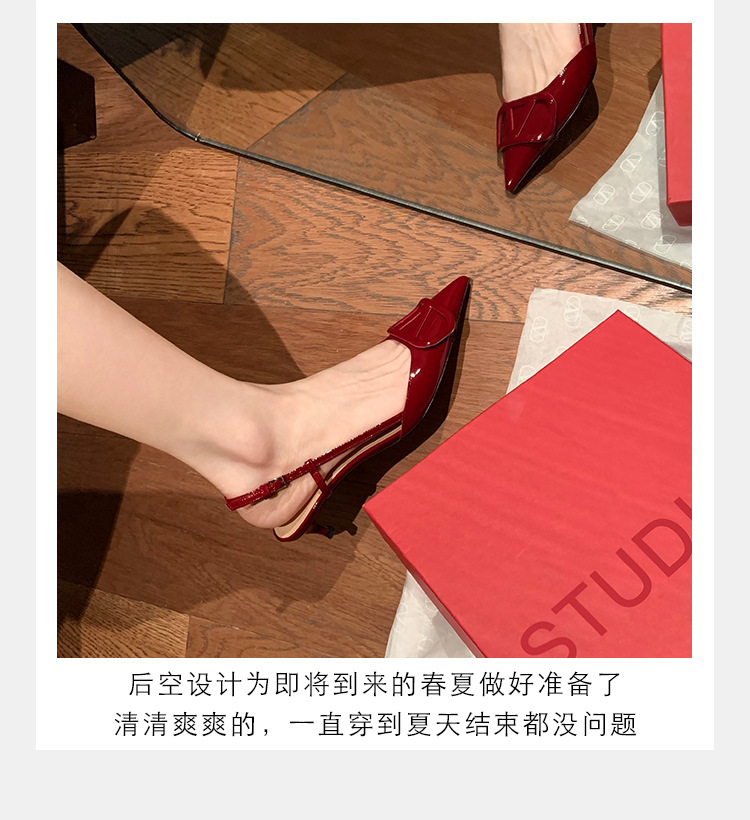 포도색 엄마님 같은 스타일의 뾰족코 하이힐, 에나멜 가죽 뒤트임 V버클 슈즈, 얇은 굽, 앞코가 덮인 샌들, 여성용 뒤트임 초하이힐스토어 가기