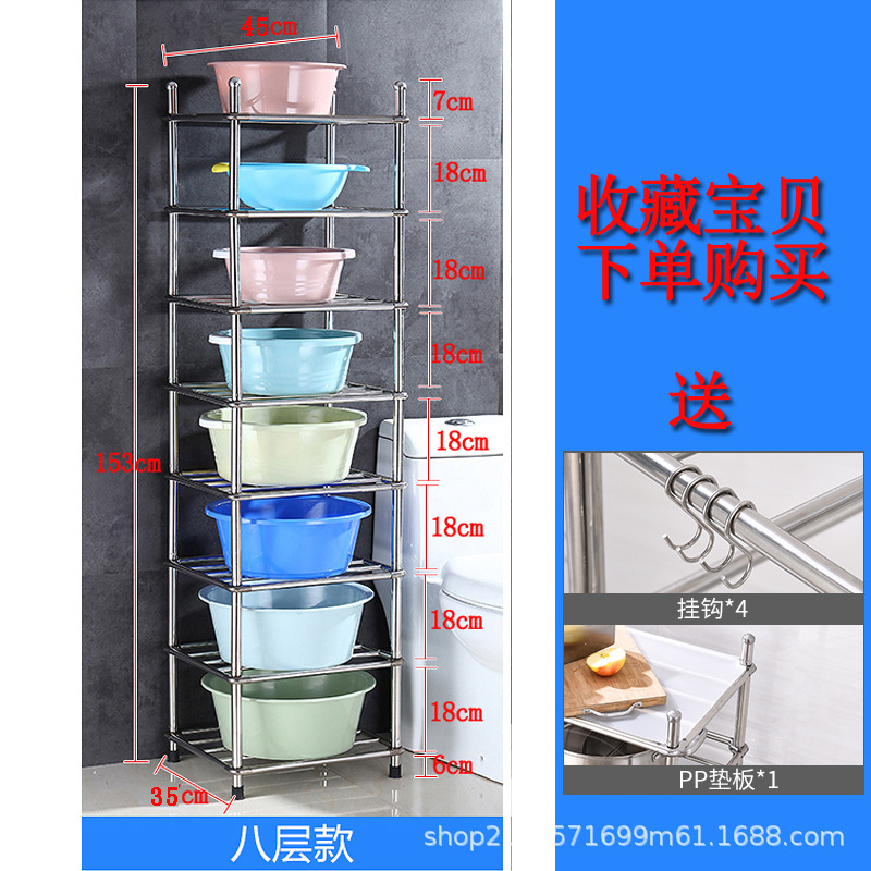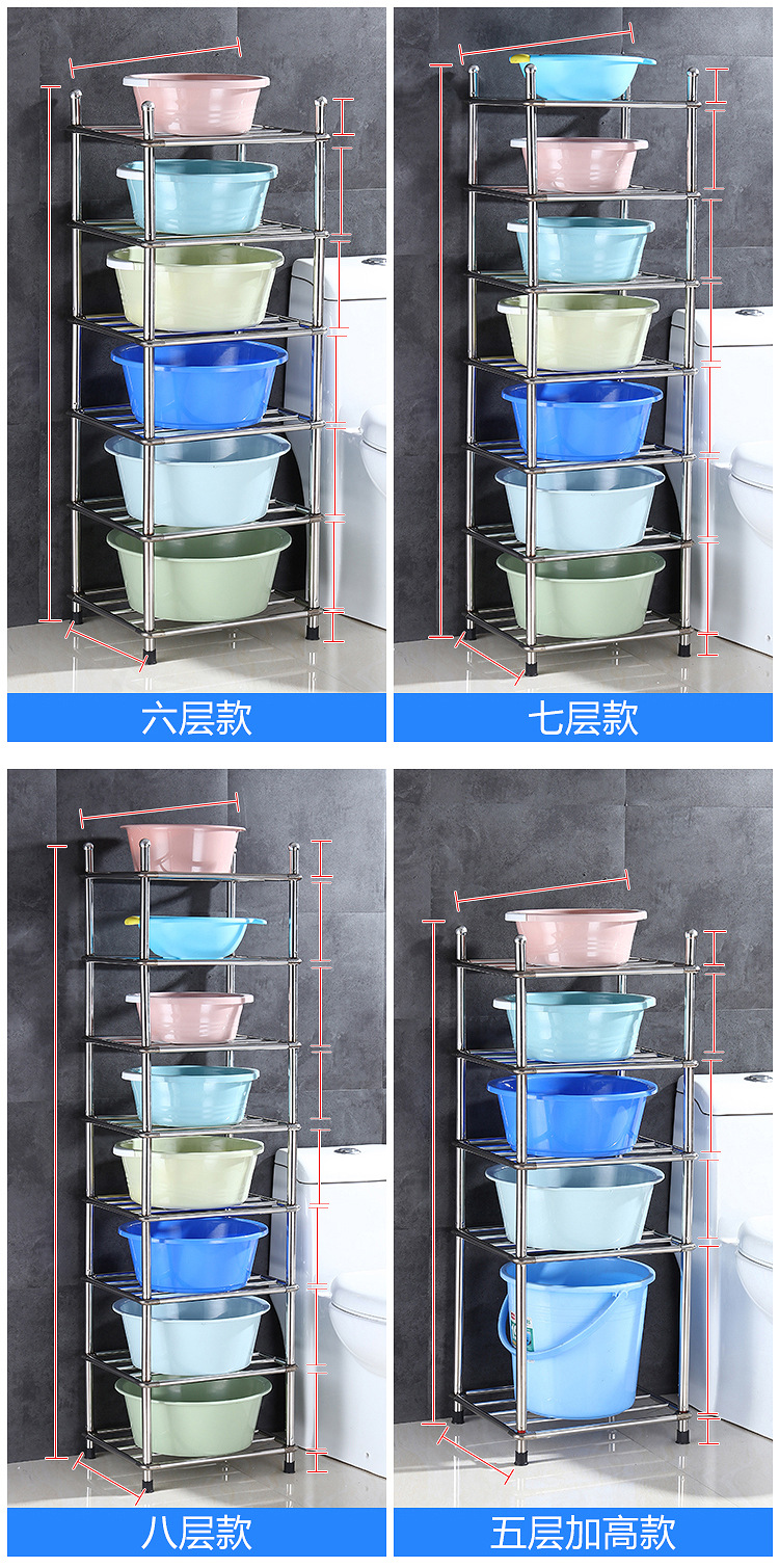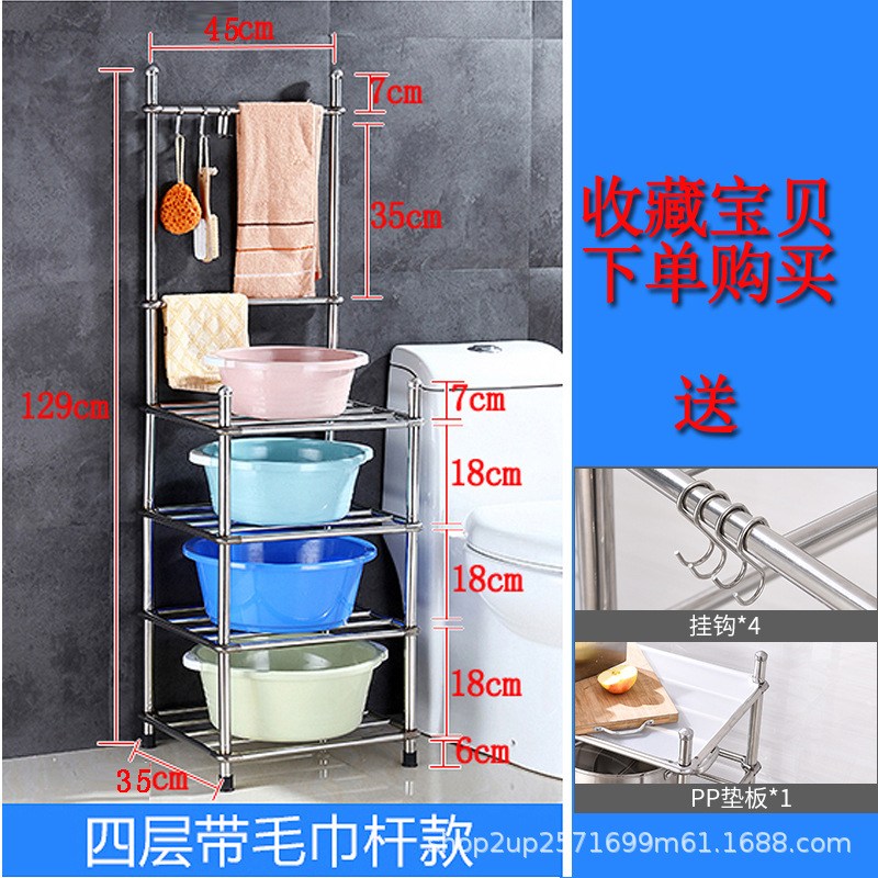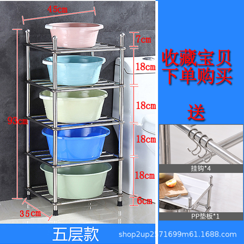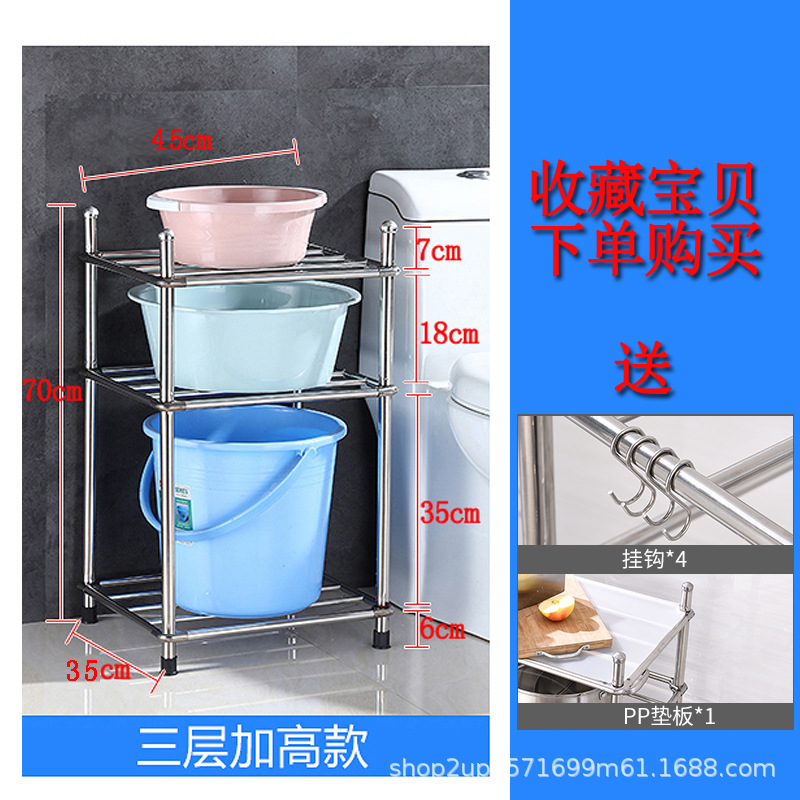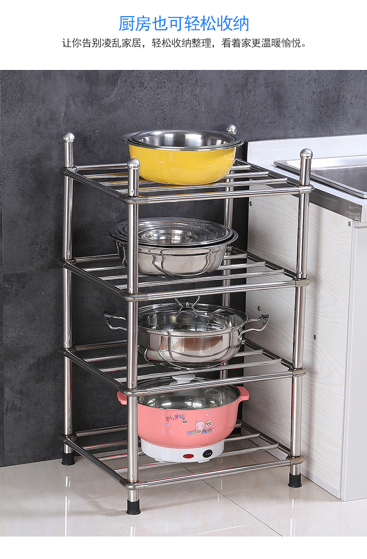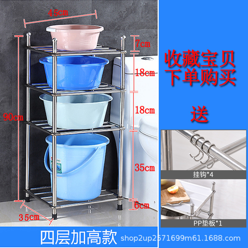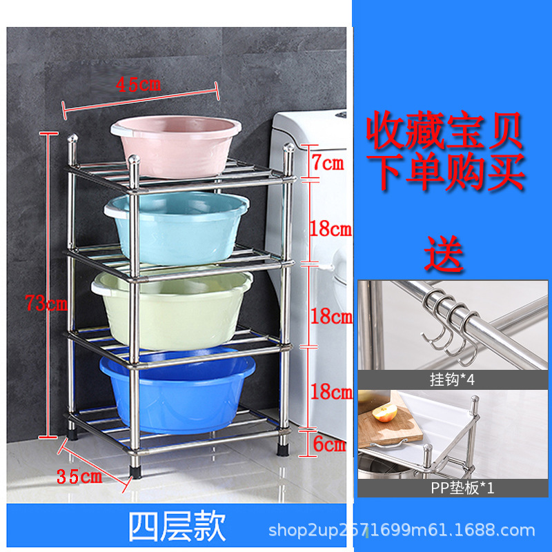 두껍고 두꺼운 다층 스테인레스 스틸 냄비 선반 주방 수납 랙 욕실 바닥 스탠딩 4 코너 세척 랙 가정용스토어 가기