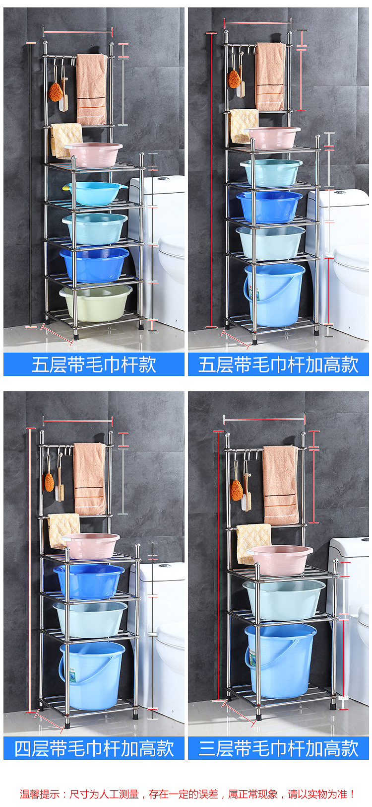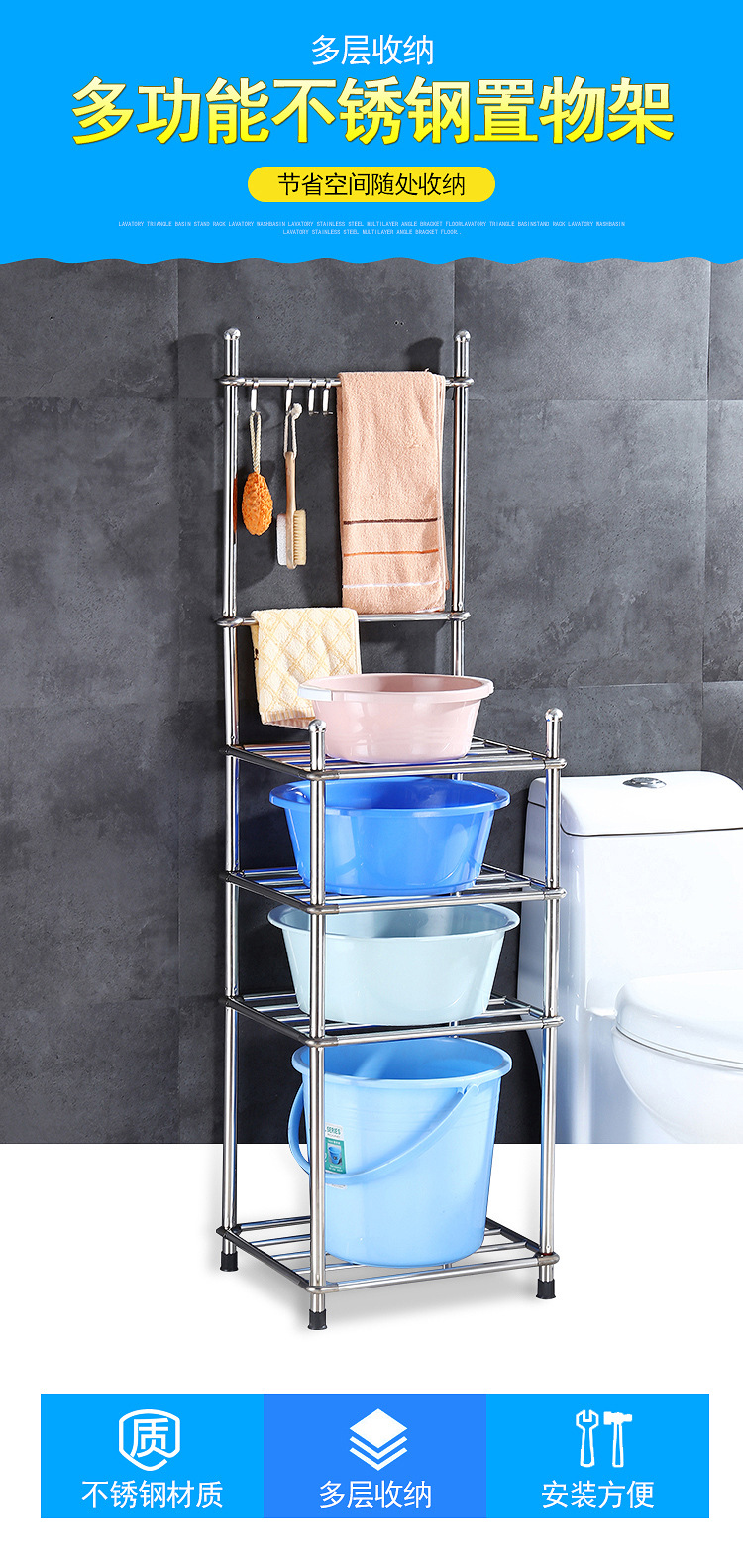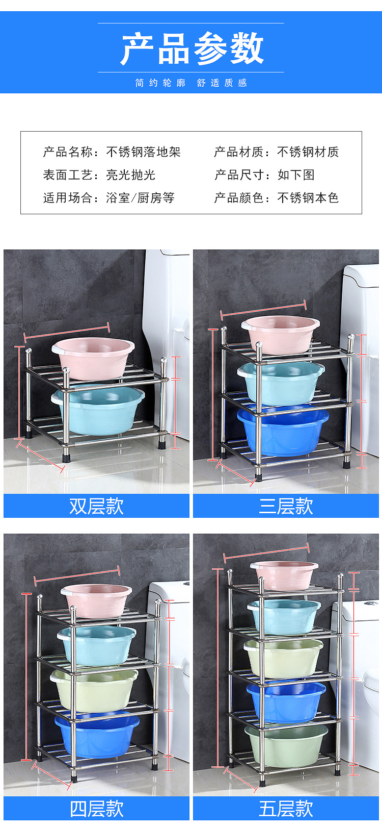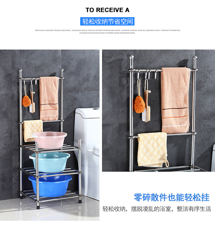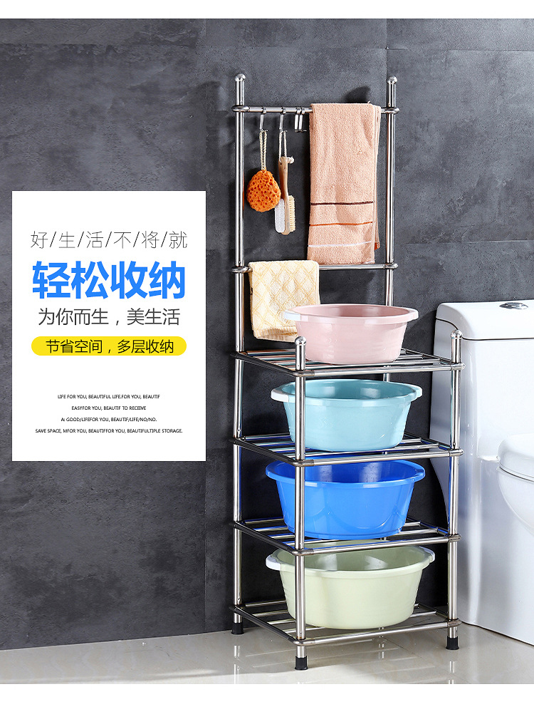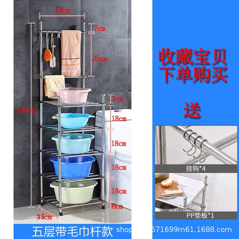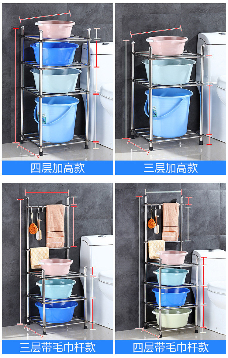 두껍고 두꺼운 다층 스테인레스 스틸 냄비 선반 주방 수납 랙 욕실 바닥 스탠딩 4 코너 세척 랙 가정용스토어 가기