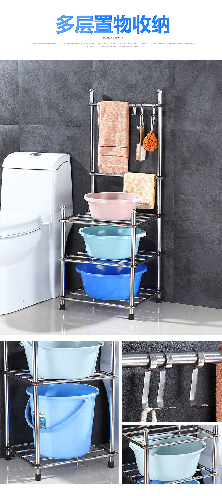 • 수건 막대가있는 3 개의 레이어 (하단 레이어 상승) 1 패드 + 6 후크 보내기