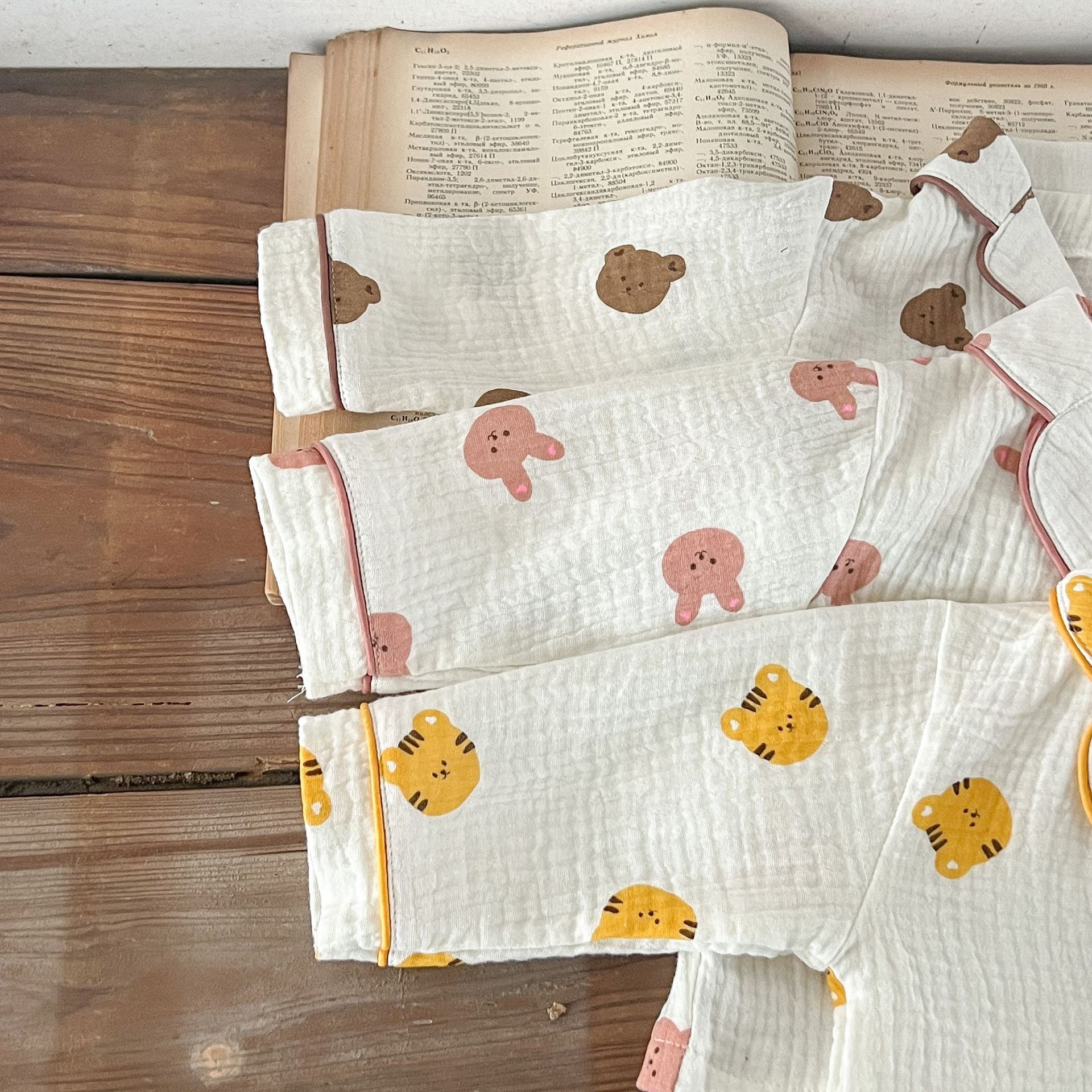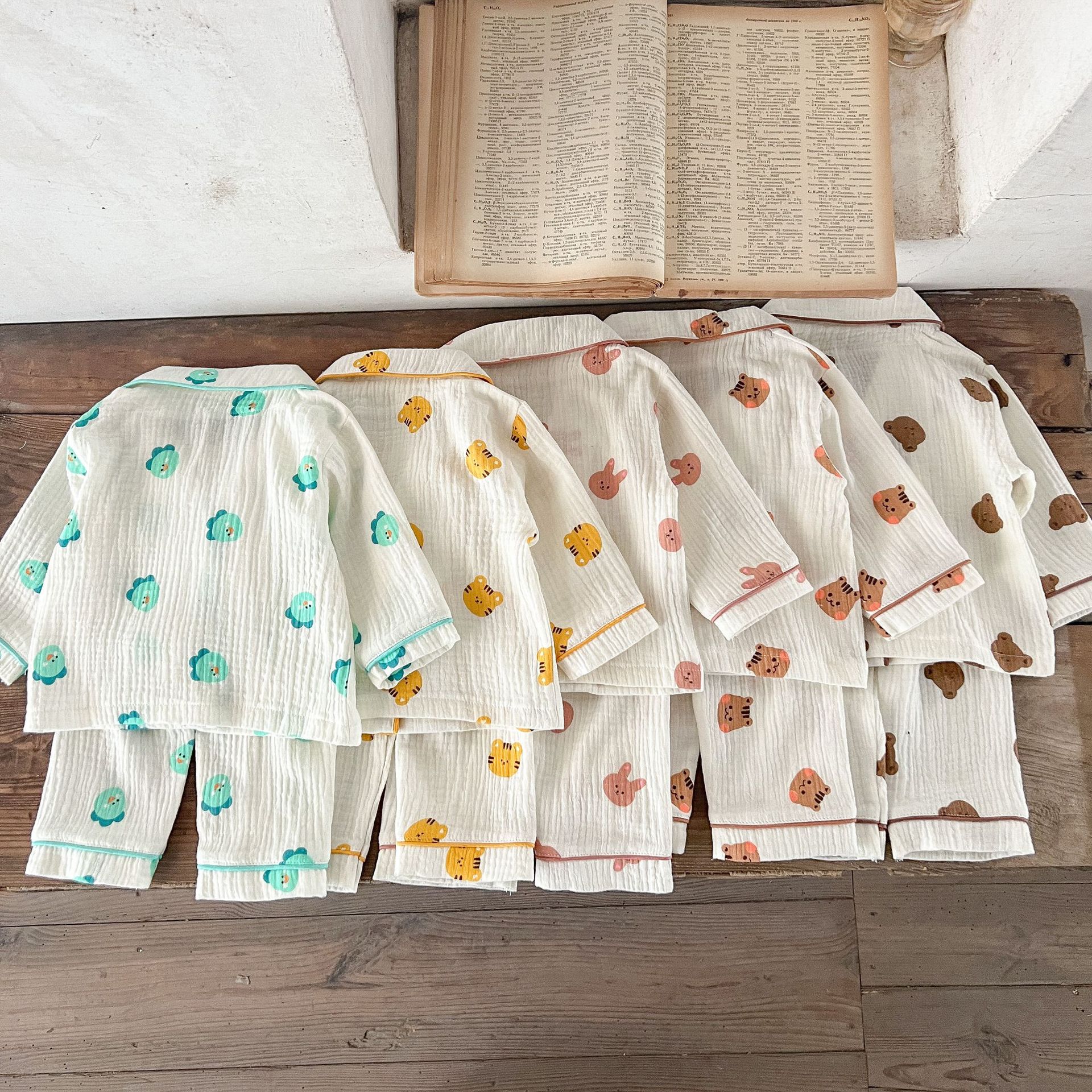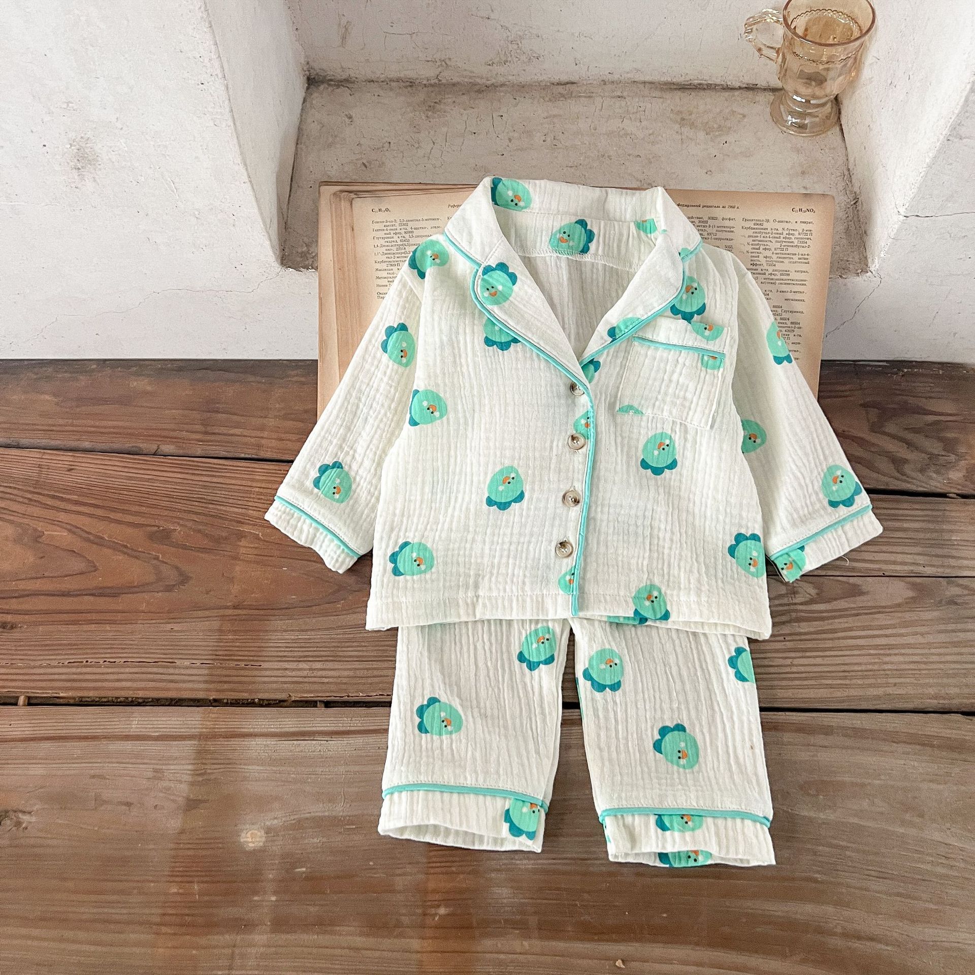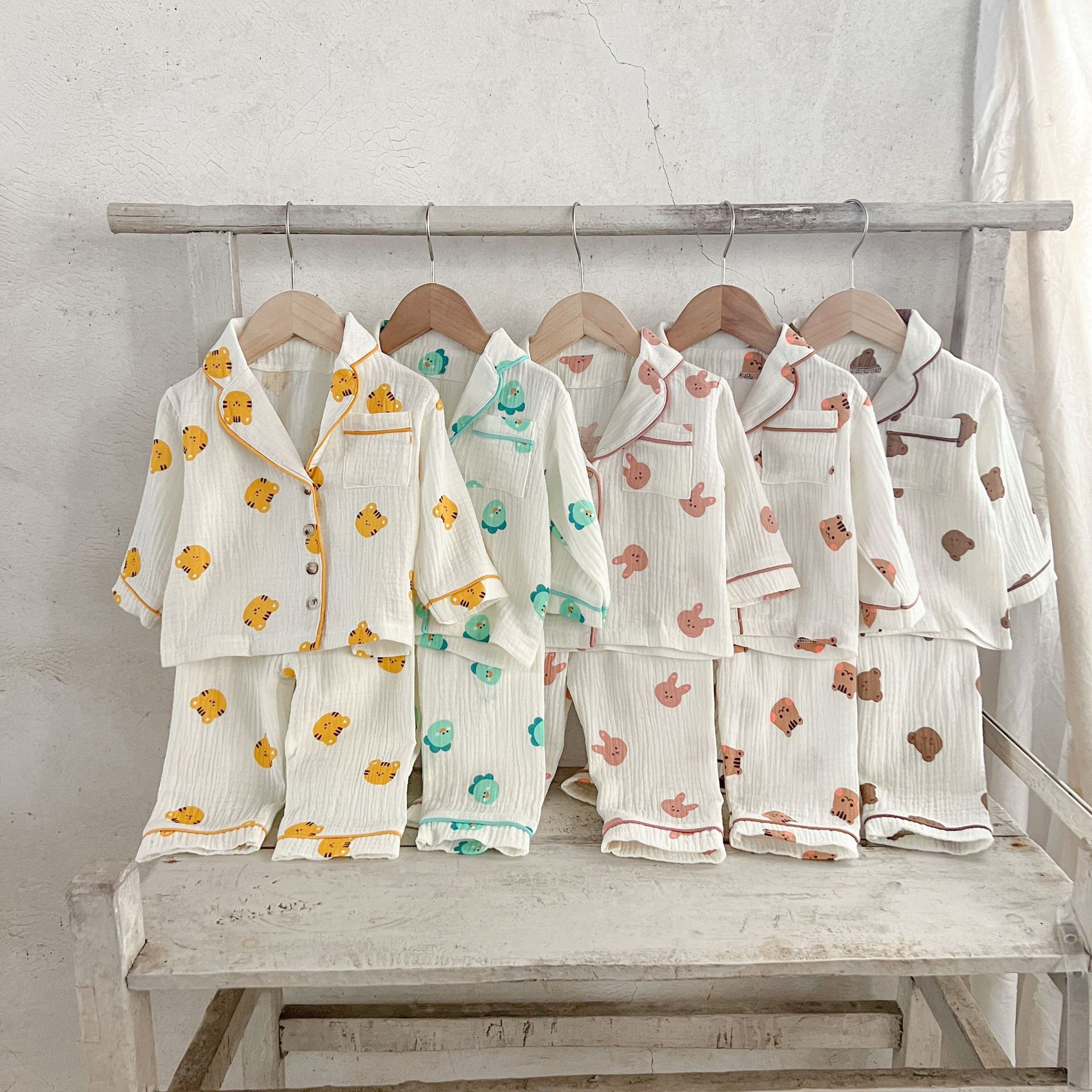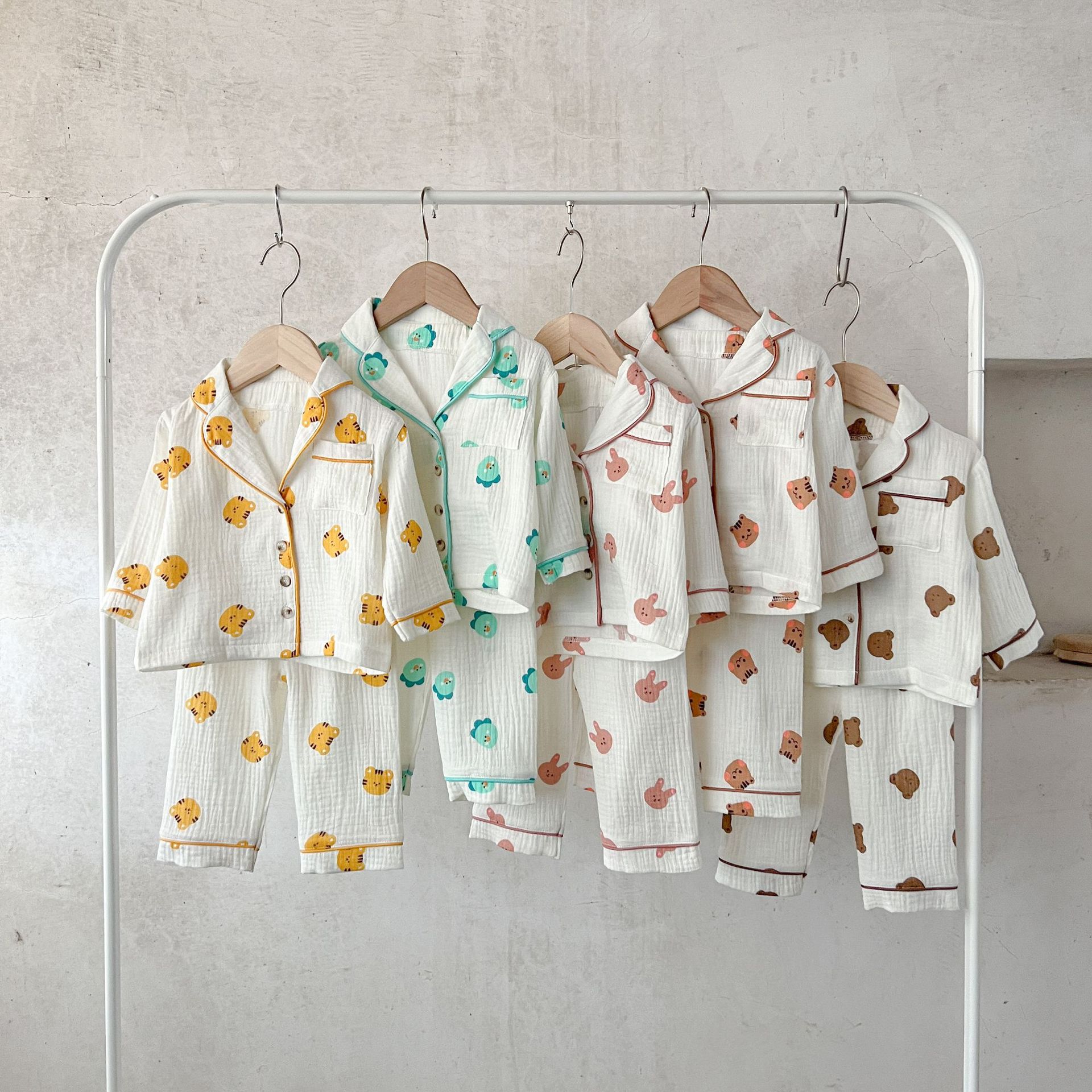 한국식 아기 만화 인쇄 옷깃 에어컨 세트 세트 남성과 여성의 순면 느슨한 가정 옷 유행스토어 가기